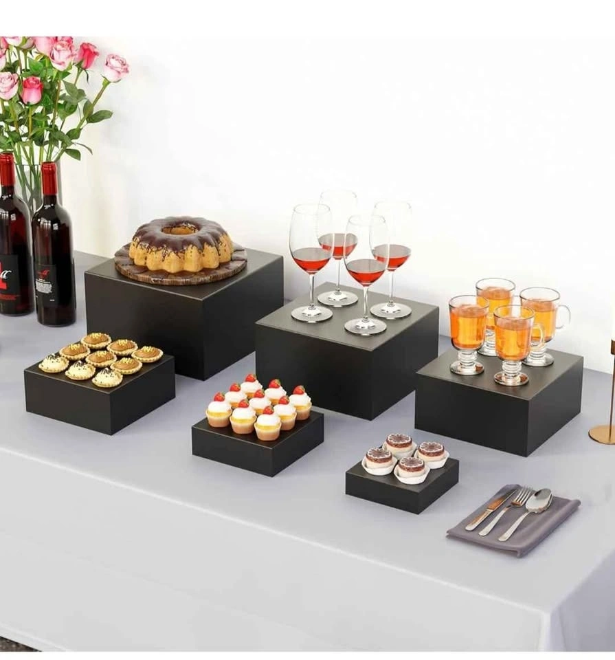 Metal Buffet Risers,6PCS Food Risers for Buffet Table 5in to 10in Display Stand for Catering Dessert Black Cube Boxes Nesting Risers with Hollow Bottoms Black