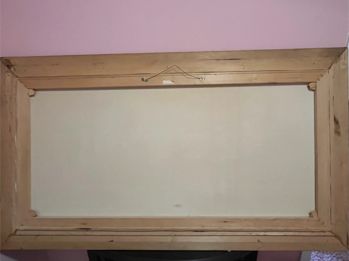 Here's a lovely framed landscape painting signed 'Thompson'. It features a serene scene with trees and a small building. A great piece to add some nature-inspired art to your home