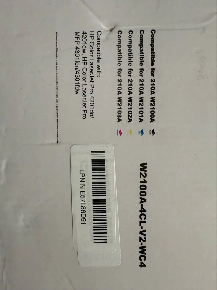 Buy & SellColor Toner cartridges HP Color LaserJet ProColor Toner cartridges HP Color LaserJet Pro$874 pack color toners - CMYK W2100A-4CL-V2-WC4 Compatible with: HP Color LaserJet Pro 4201dn/ 4201dw, HP Color LaserJet Pro MFP 4301fdn/4301fdwWHERE TO MEETCheck LocationView MapSELLERverifiedRushiHumber Summit681 review0 chats·0 favorites·4 viewsSEND CHAT TO SELLERHi Rushi! I’m interested in your listing.Hi Rushi! I’m interested in your listing.Get the Karrot app to chatSign In to chat