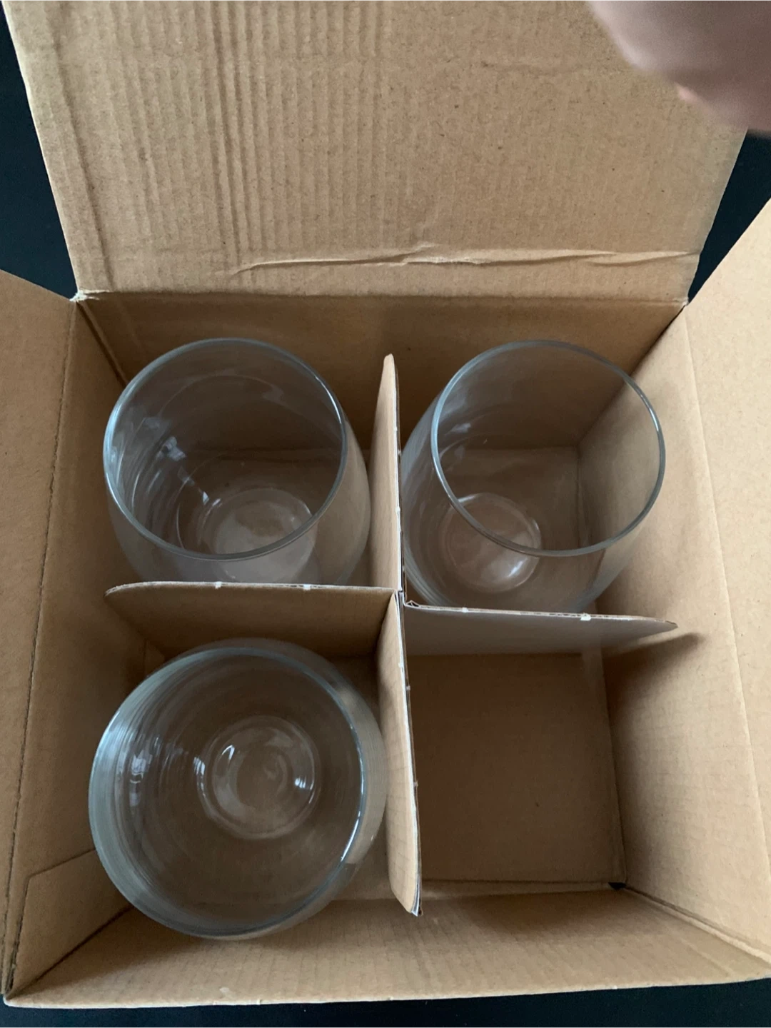 Selling a set of 4 Luminarc Cachet stemless wine glasses! They're in great condition and come in their original box. Perfect for everyday use or special occasions