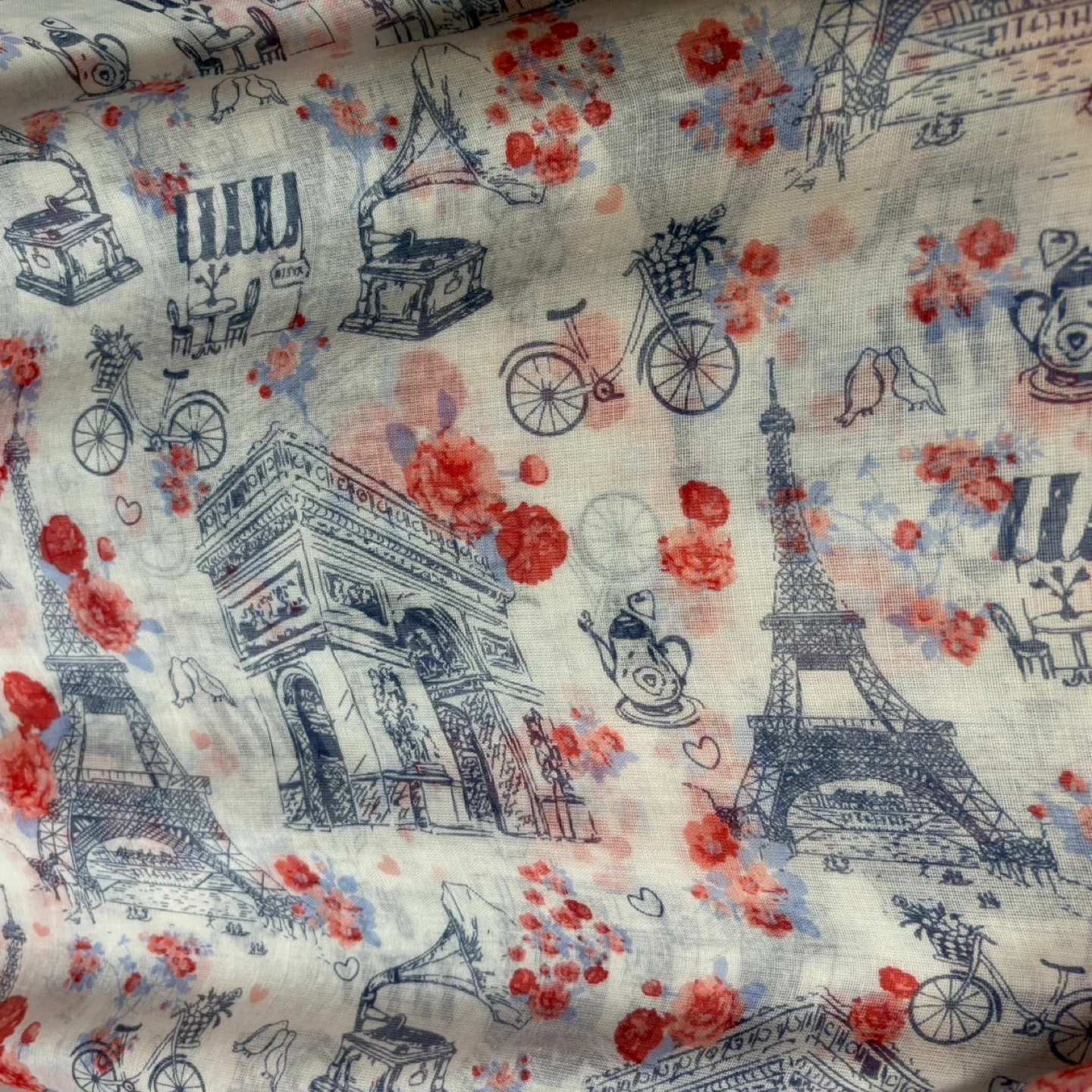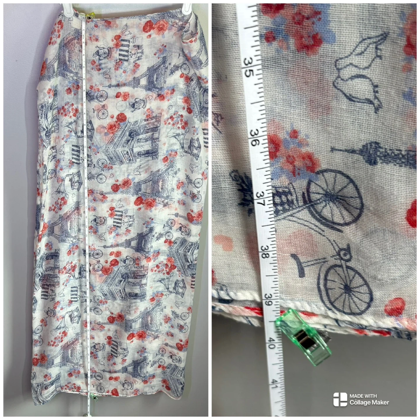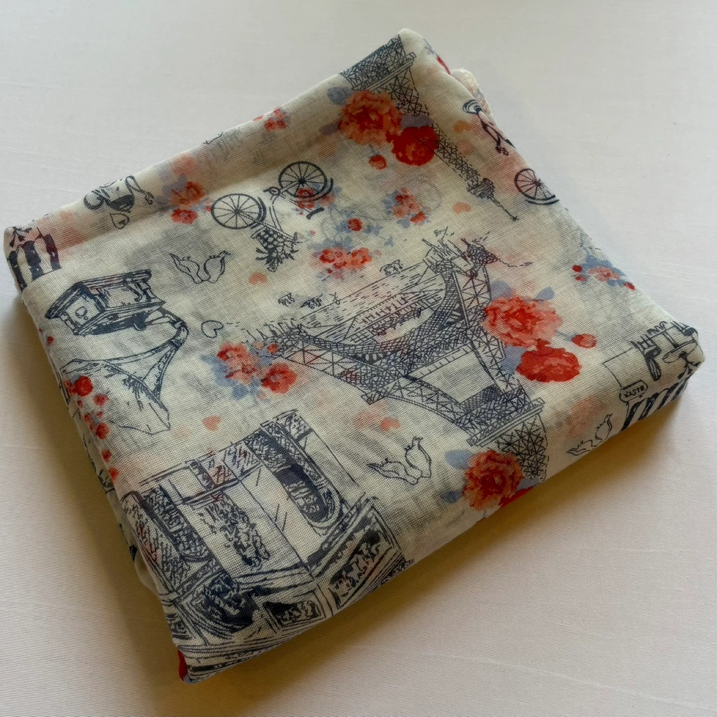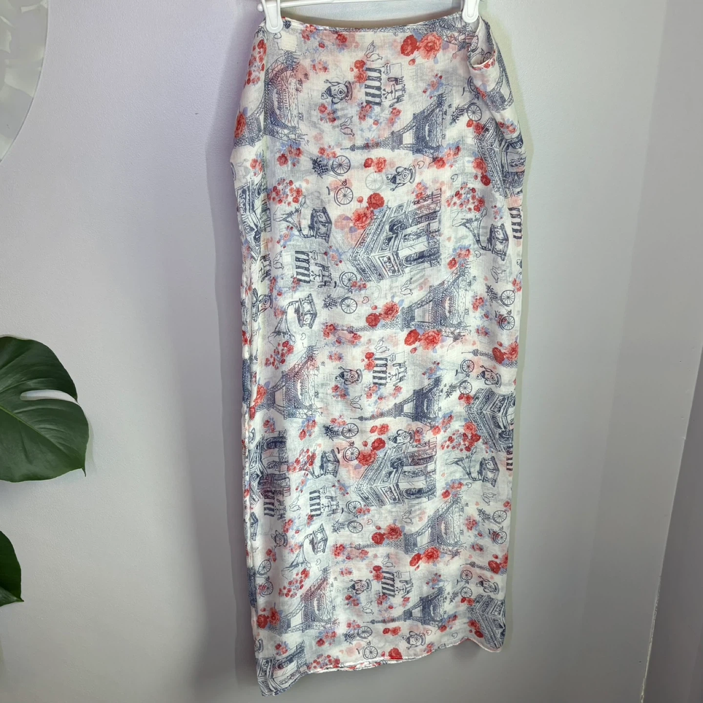 Add a touch of Parisian charm to your wardrobe with this MyStyle infinity scarf, adorned with a delightful blue and coral floral Paris-themed print. This lightweight scarf is perfect for adding a pop of colour and whimsy to any outfit. It is in good condition, ready to enhance your style.