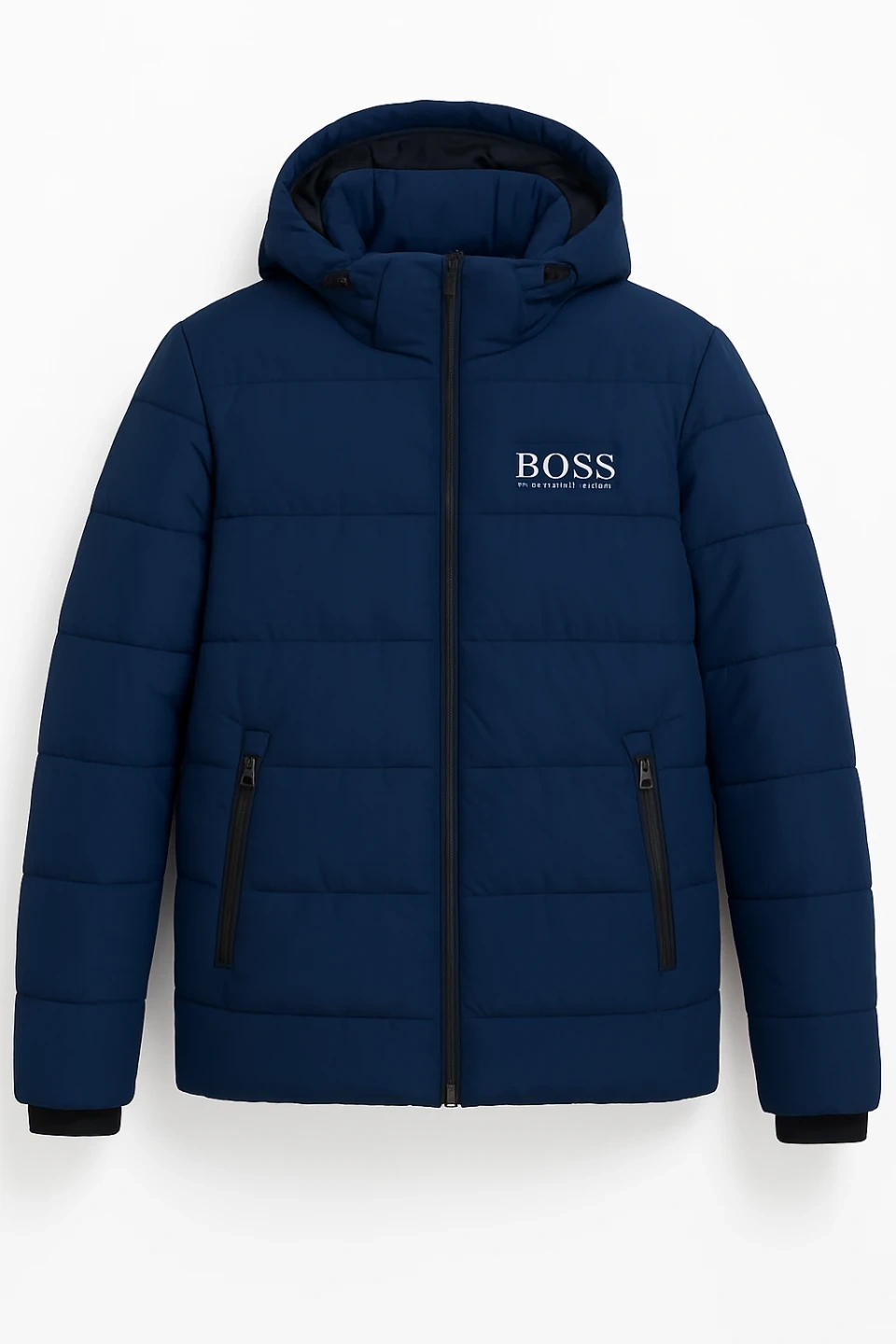 Hugo Boss padded jacket in a nice navy blue colour. It's perfect for the cooler weather and is in great condition!