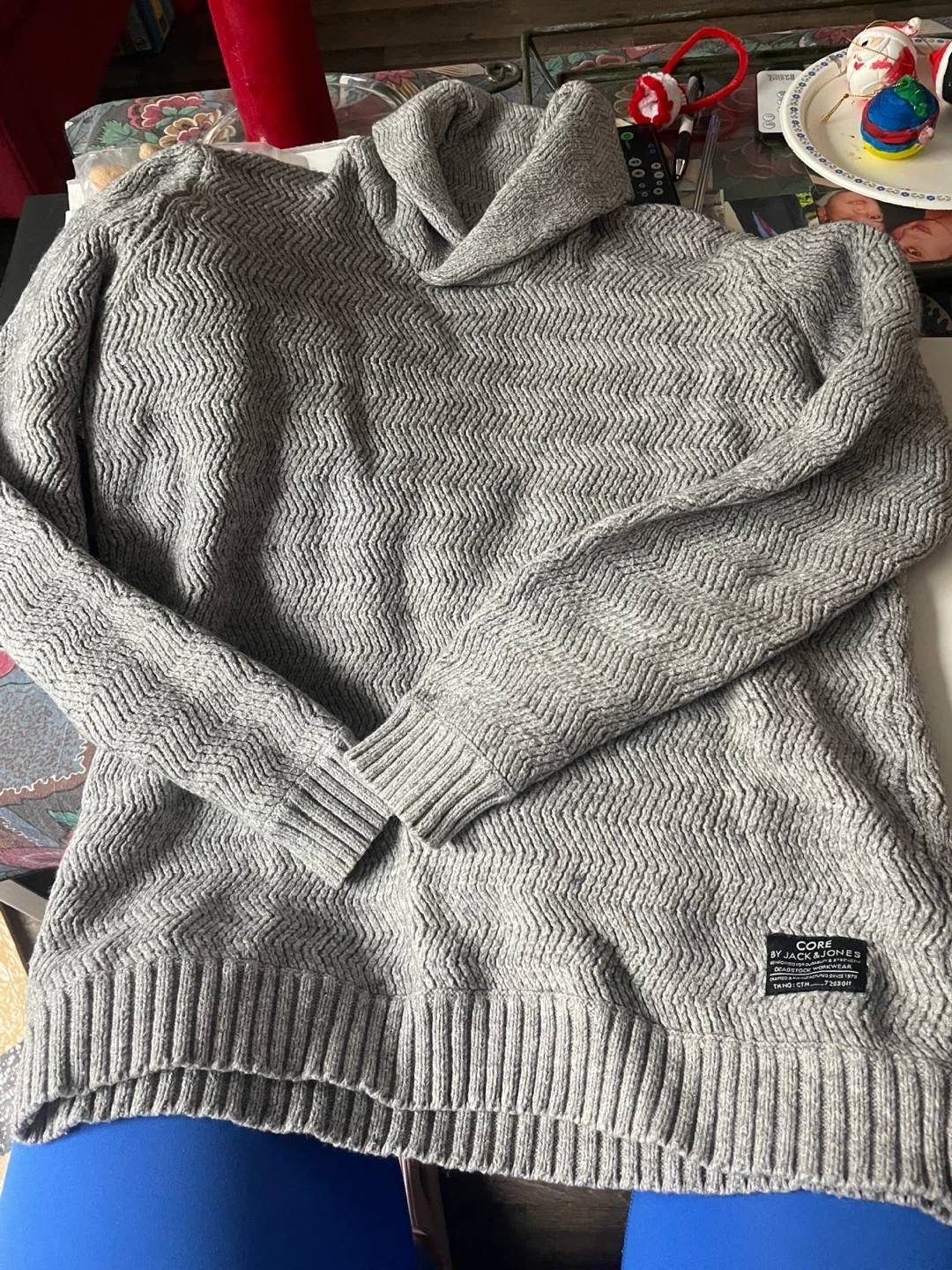 This is a comfy grey knit sweater from Jack & Jones! It's a size medium and in great condition. Perfect for staying warm and stylish during the cooler months