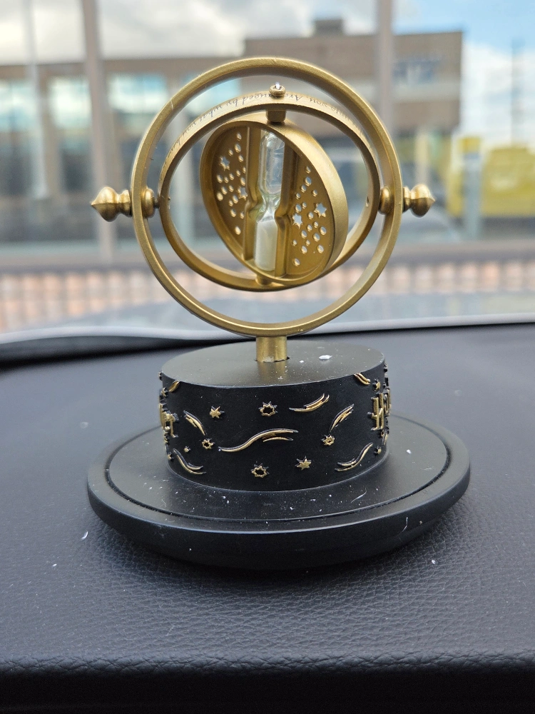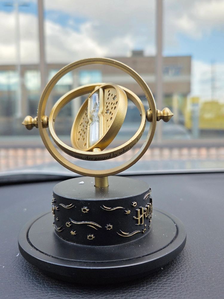 Selling a Harry Potter Time Turner decorations. It's in great condition and would be a perfect addition to any Harry Potter collection! The base has Harry Potter written on it in gold lettering with stars.