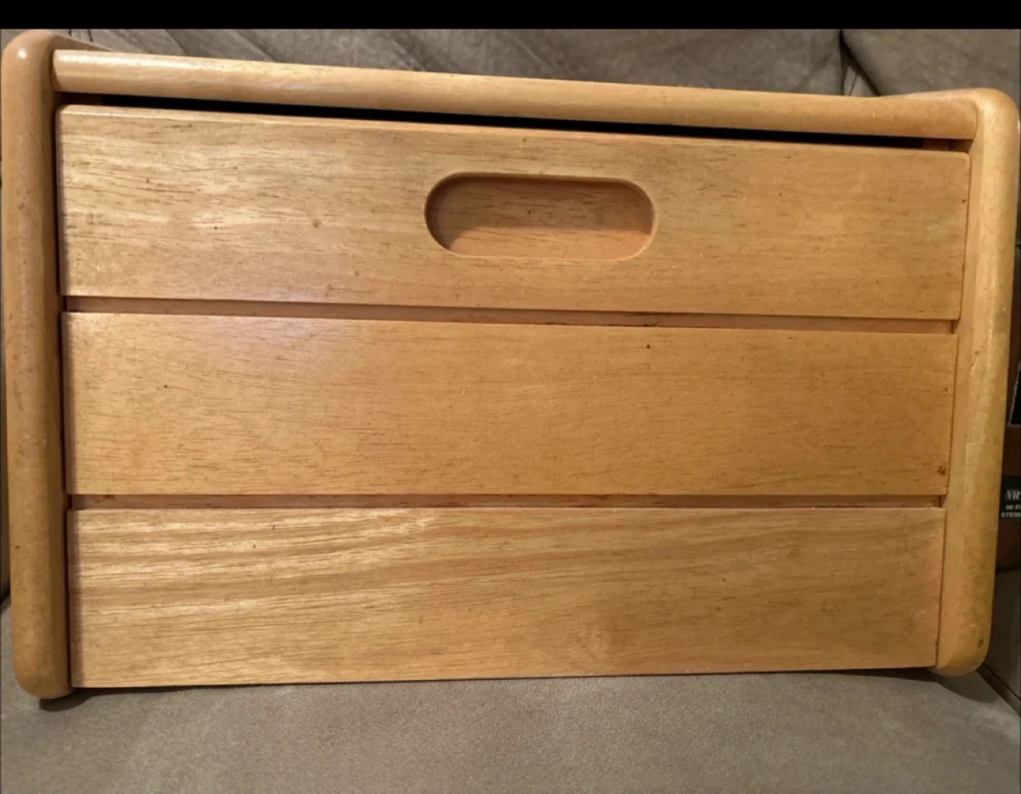 Selling a wooden bread box in great condition. It's perfect for keeping your bread fresh and organized on your kitchen counter. It has a simple, clean design that will fit in with any decor