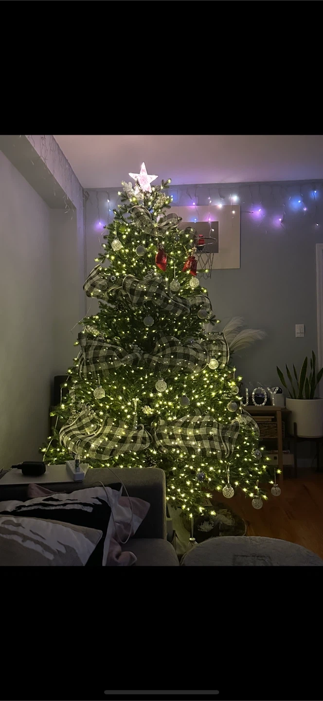 Micro LED artificial Christmas tree. Comes apart in three sections. Wiring is internal and lights are embedded into the branches. Comes with original box.