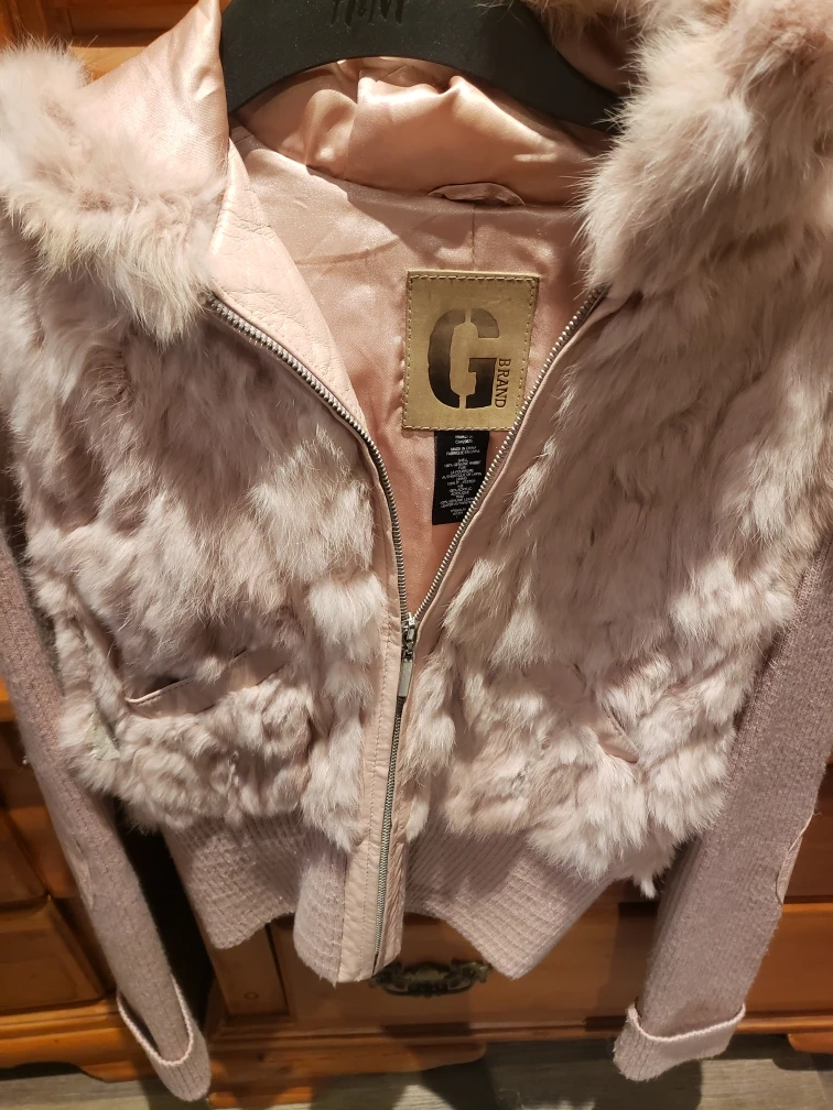 Selling a G Brand jacket that combines rabbit fur and leather. It's a unique piece that adds a touch of luxury to any outfit. The jacket features a soft, plush rabbit fur exterior with leather accents for a stylish contrast. Great for adding warmth and flair to your wardrobe!