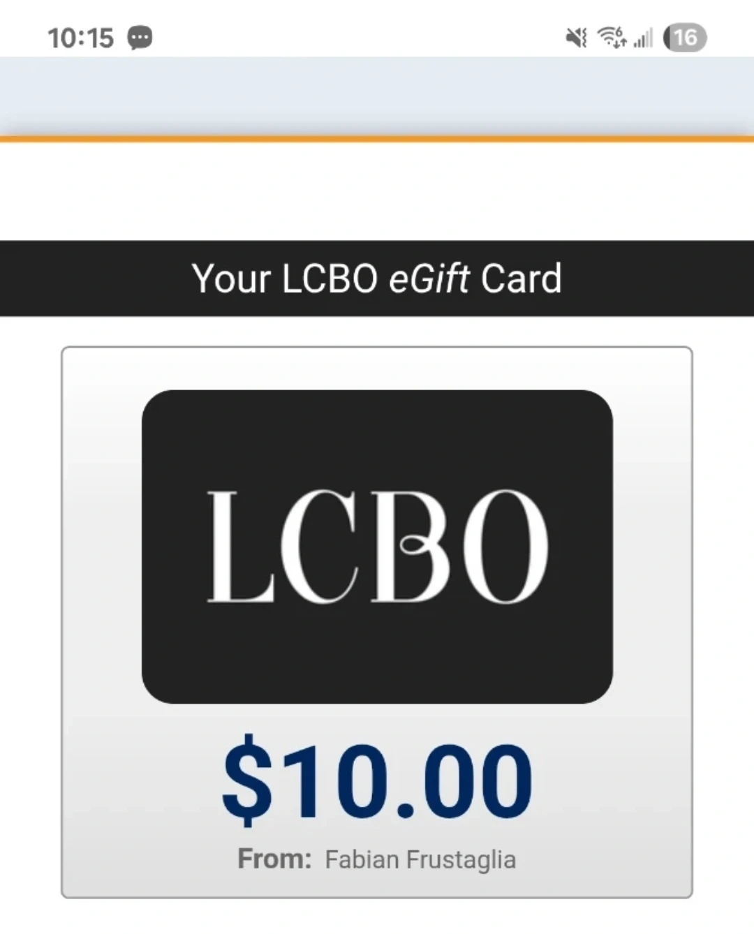 Buy & SellLCBO $10 GiftcardLCBO $10 Giftcard$3Selling an LCBO giftcard with a $10 balance will be sent by email delivery because it is digital WHERE TO MEETCheck LocationView MapSELLERJohn smithLower Sumas Mountain50 reviews0 chats·0 favorites·2 views