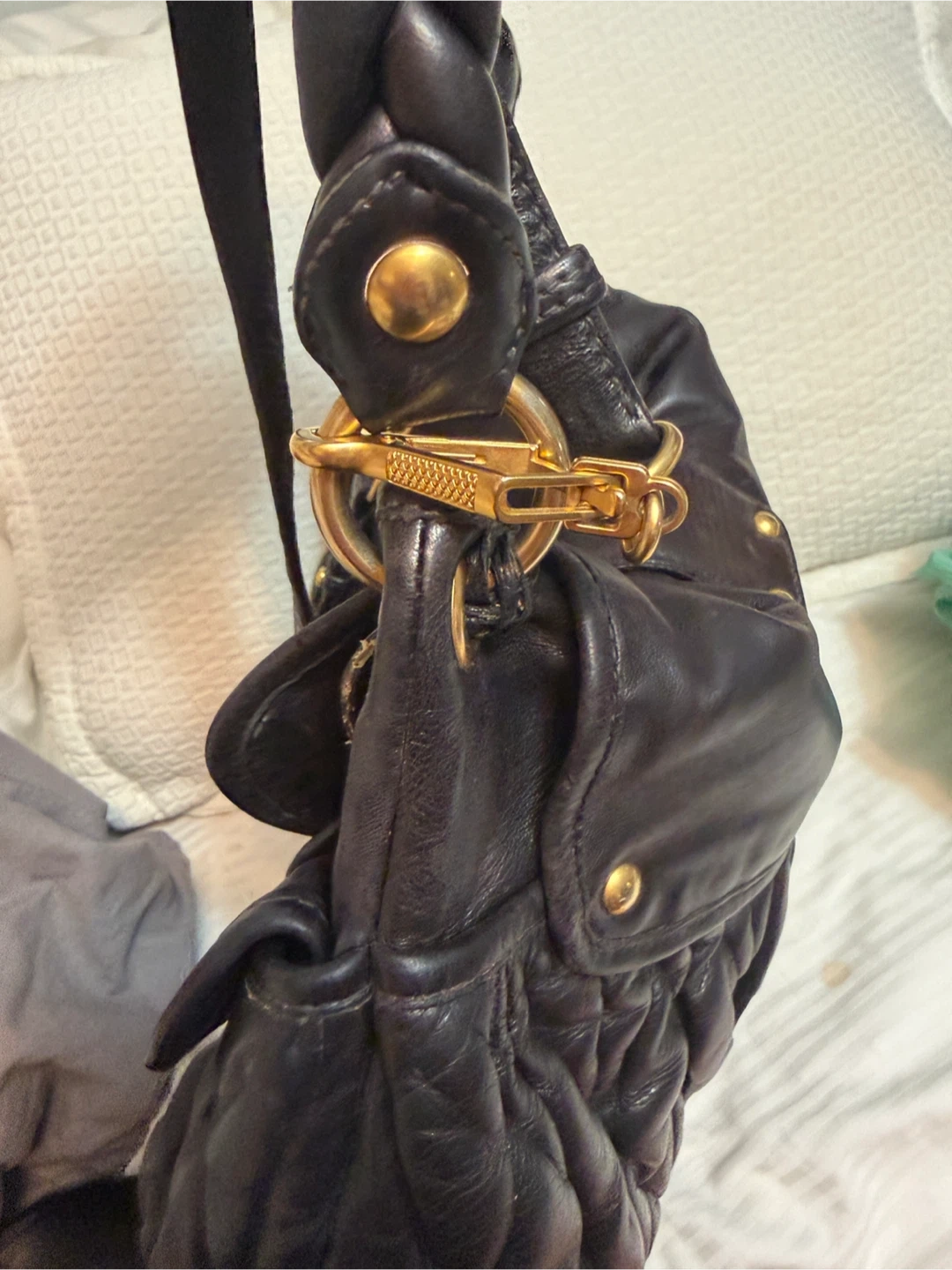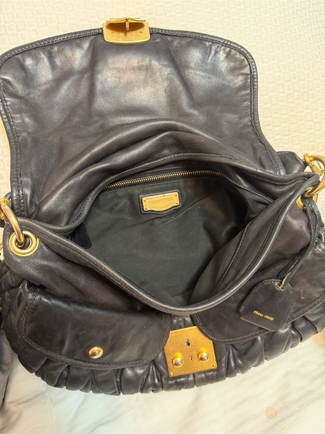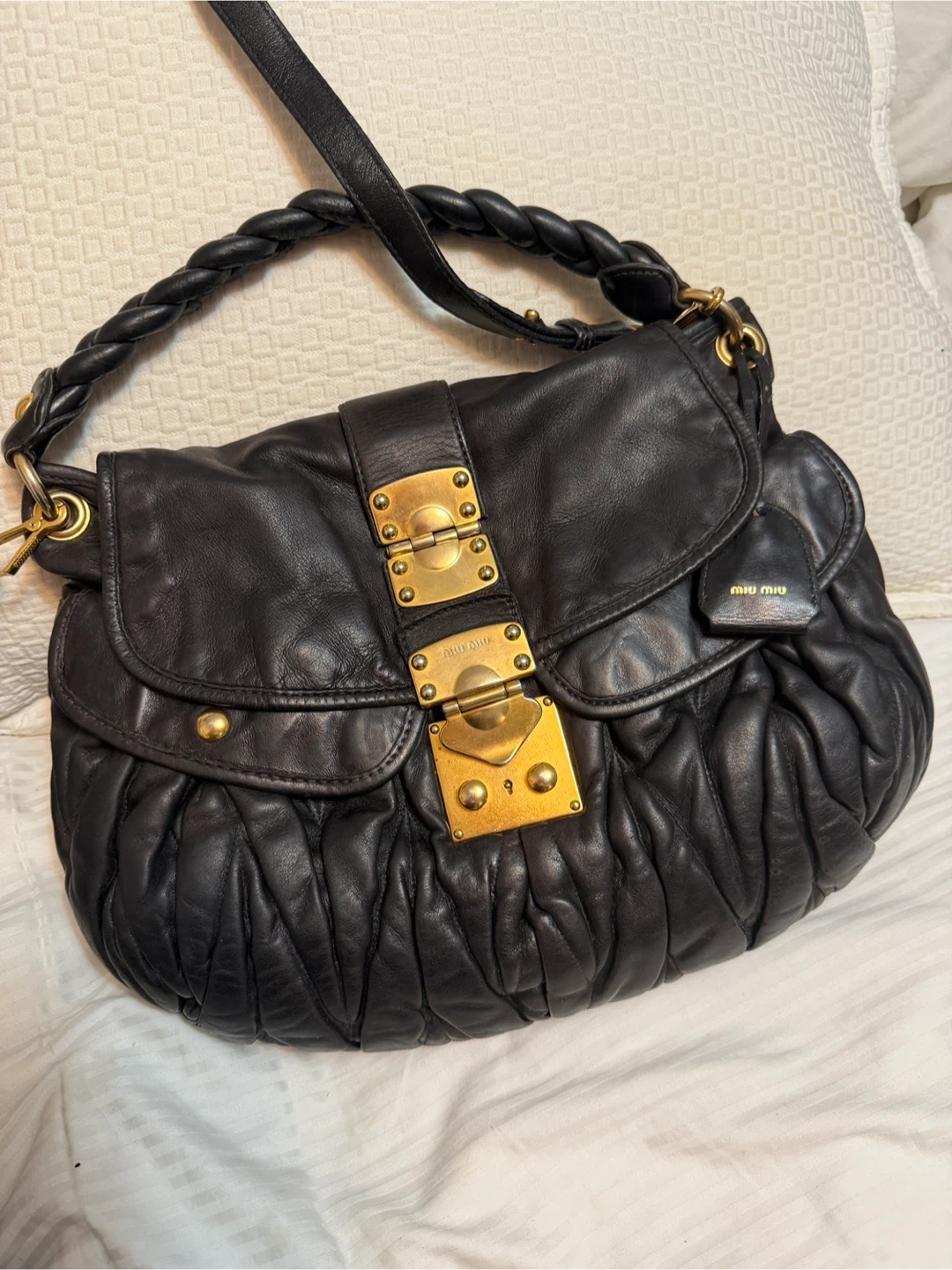 Buy & SellMiu Miu Black Leather Shoulder BagMiu Miu Black Leather Shoulder Bag$302Selling a Miu Miu black leather shoulder bag. It features gold-tone hardware and a distinctive ruched design. Comes with its original dust bag.BrandMiu MiuWHERE TO MEETCheck LocationView MapSELLERverifiedThessEast Vancouver882 reviews7 chats·5 favorites·294 viewsSEND CHAT TO SELLERHi Thess! I’m interested in your listing.Hi Thess! I’m interested in your listing.Get the Karrot app to chatSign In to chat
