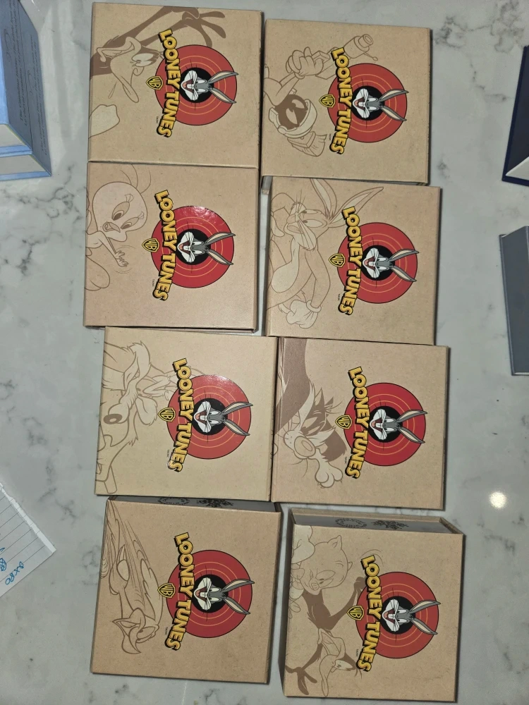 Selling 8 Looney Tunes silver coins. All come in their original boxes, complete with the classic Looney Tunes branding. A great addition for any collector or fan!