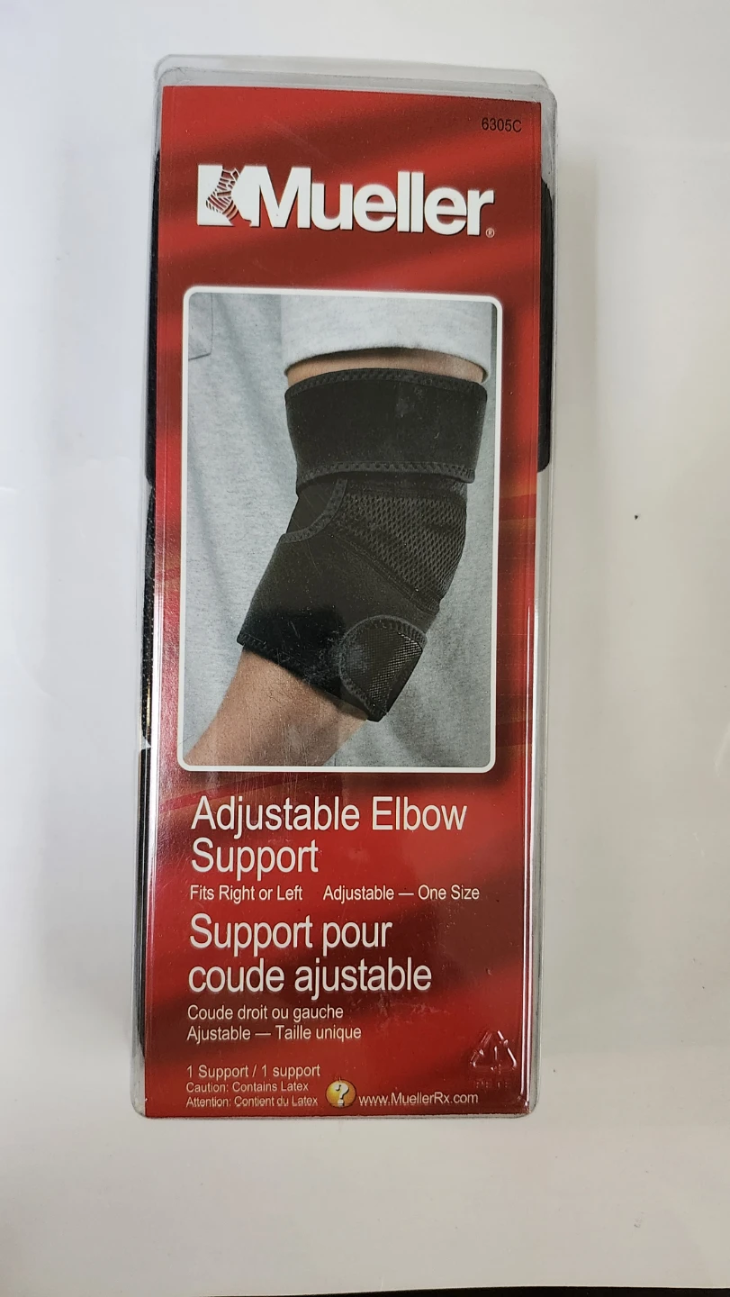 I'm selling a Mueller adjustable elbow support, designed to fit either the right or left elbow.