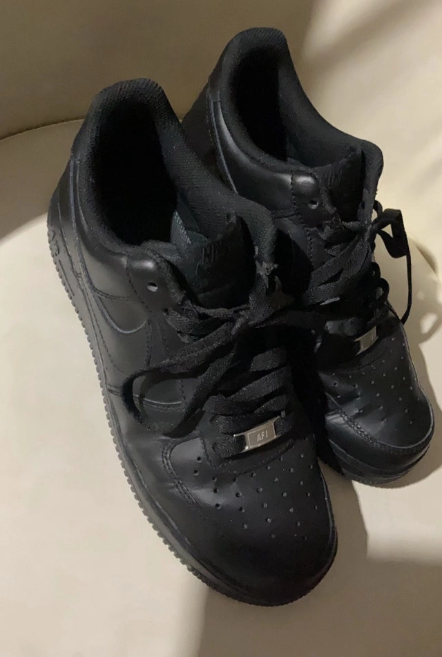 Get ready to step out in style with these used women's black Nike Air Force sneakers, perfect for adding a sleek, sporty touch to any outfit. These classic sneakers feature a durable leather upper and a comfortable cushioned sole, offering both style and support.