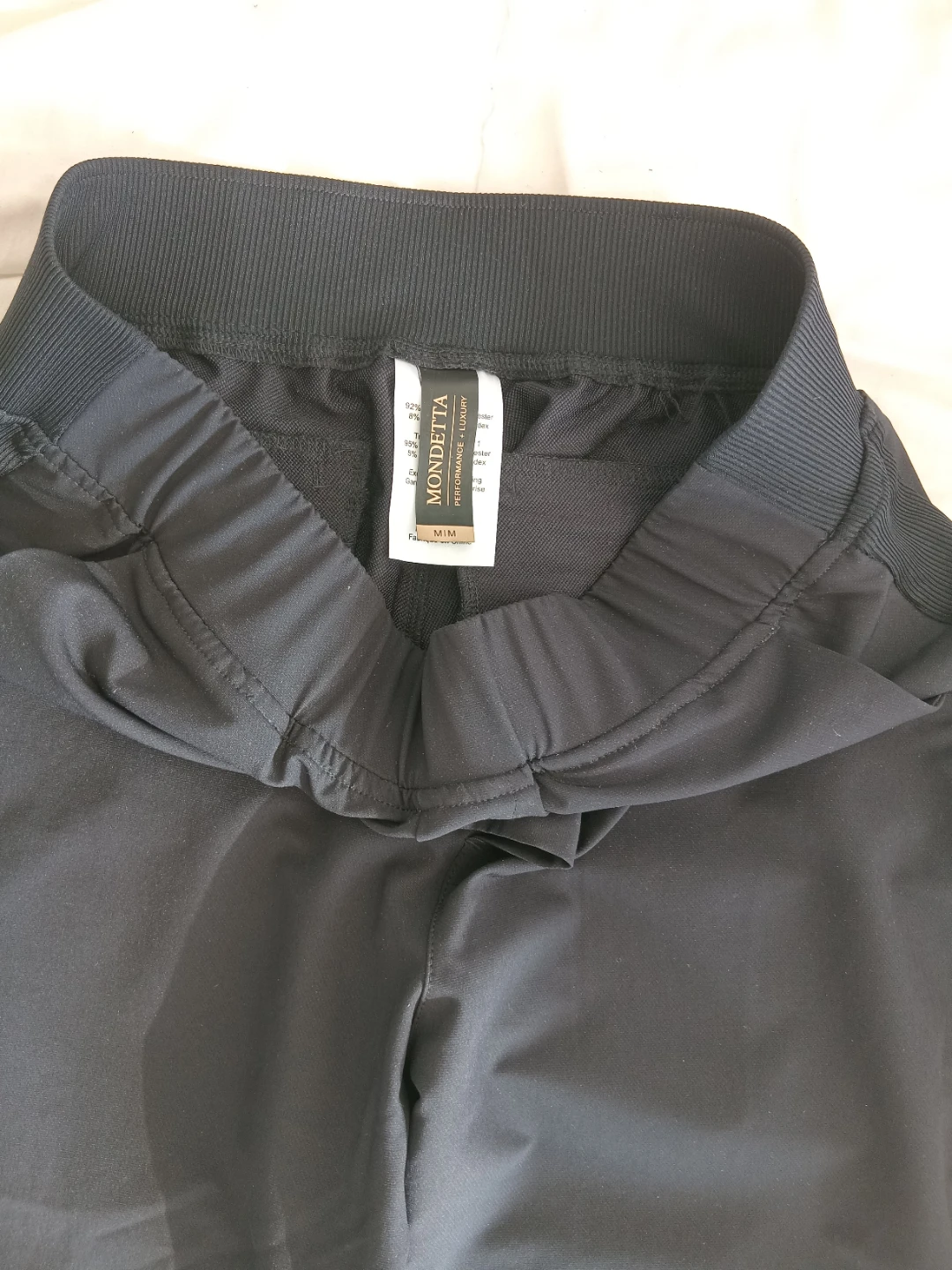 Selling a pair of Mondetta performance pants in size medium. They're a sleek black colour and feature a comfortable elastic waistband. Great for workouts or just lounging around!