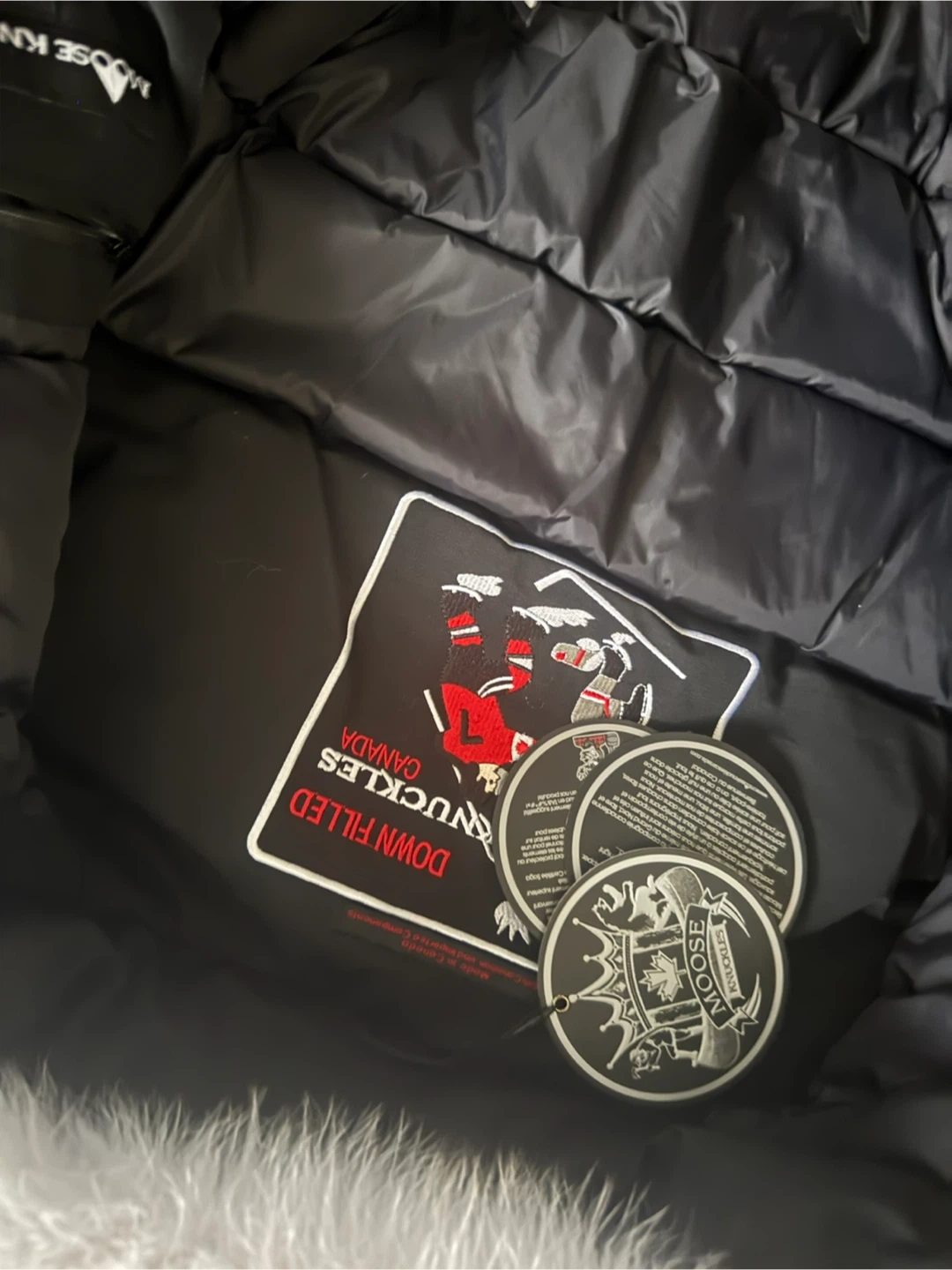 Selling a Moose Knuckles bomber jacket. It's a size small and in great condition. This stylish jacket is perfect for keeping warm during the colder months!