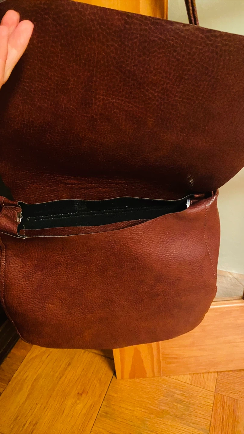 Selling a stylish brown leather shoulder bag. It's in great condition and ready for a new owner! The bag features a classic design with a flap closure and a comfortable shoulder strap. Perfect for everyday use!