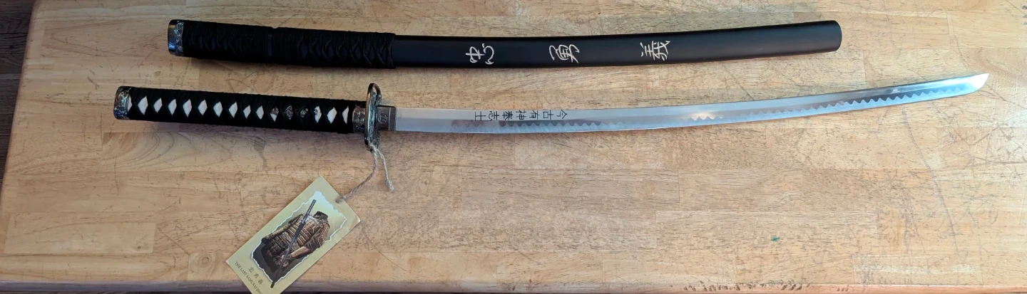 Captain Nathan Algren'd KATANA (BATTLE READY). The tag has the words Purity, Loyalty, Heroic Courage, and Honest Justice written on it. It would be a great display piece!