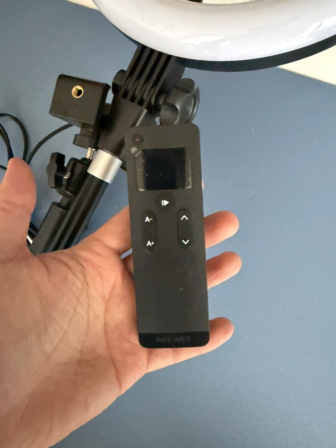 Selling a Neewer ring light with a tripod stand and remote. It's in great shape and ready to use. The remote makes it easy to adjust the settings. Perfect for video calls or content creation!