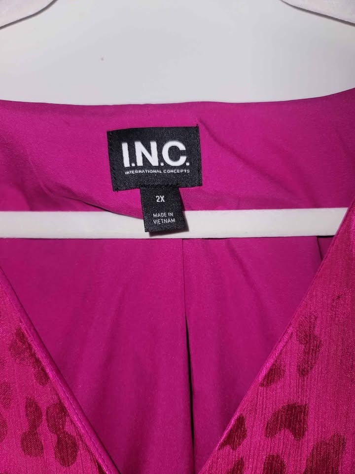 New Sz 2X Fuschia Satin Animal Print Blouse