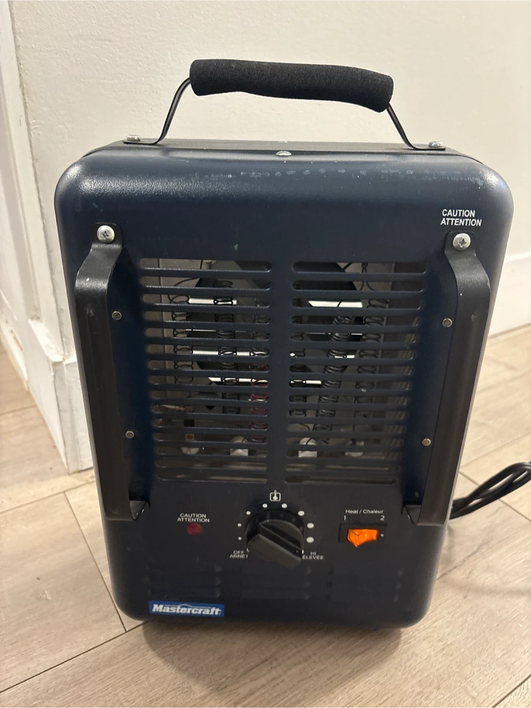 Selling a portable heater from Mastercraft. It has two heat settings and a handle for easy carrying.