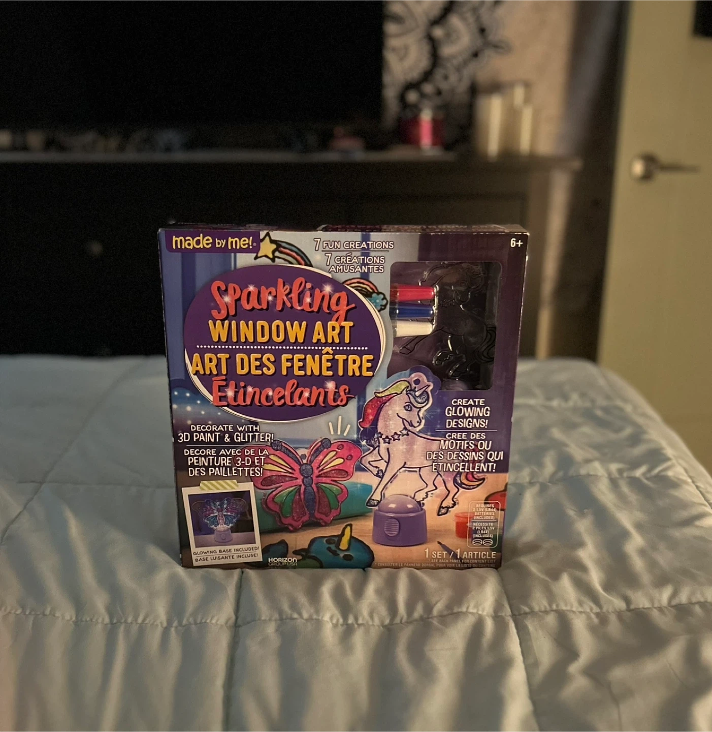 Selling a brand new Made by Me! Sparkling Window Art kit! It includes everything you need to decorate with 3D paint and glitter to create glowing designs. The kit also includes a glowing base! 🚠Pet-free home. Pickup in Leduc only, please.