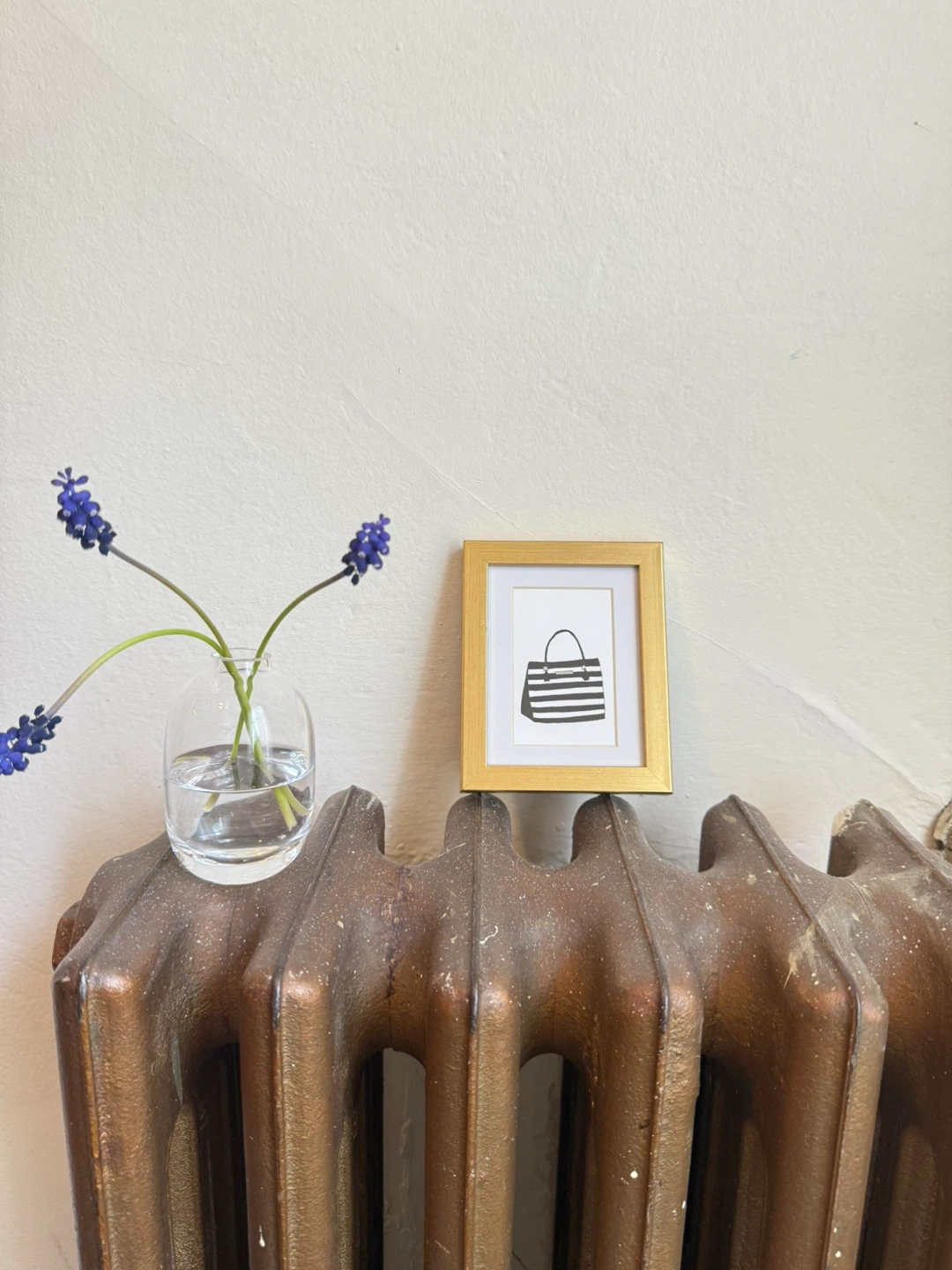 Gold-coloured extra small photo frame from UO in good condition, I can only use command strips and the stand on the back stuck out so much so I took it off… so the back looks mangled lol
