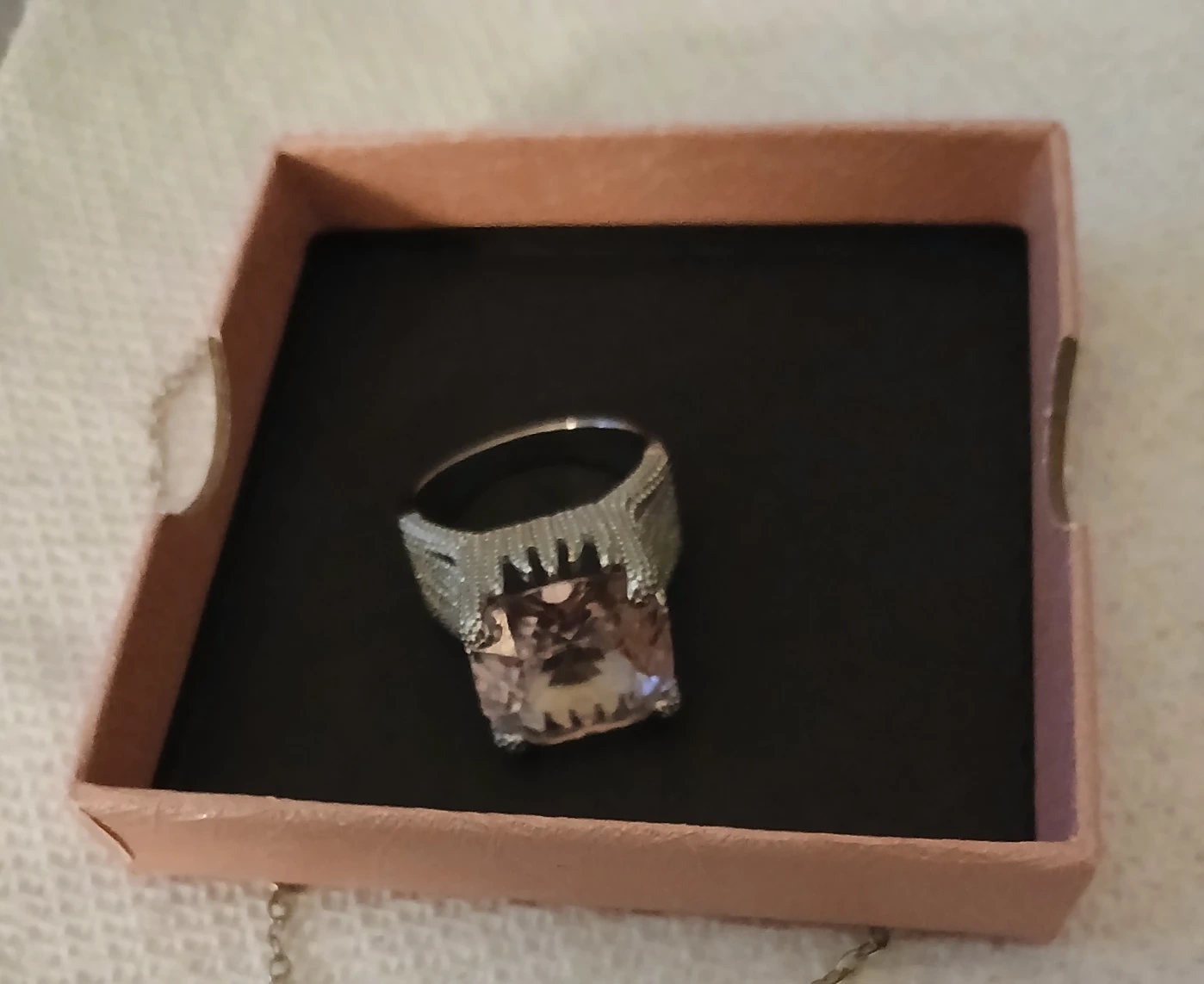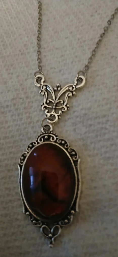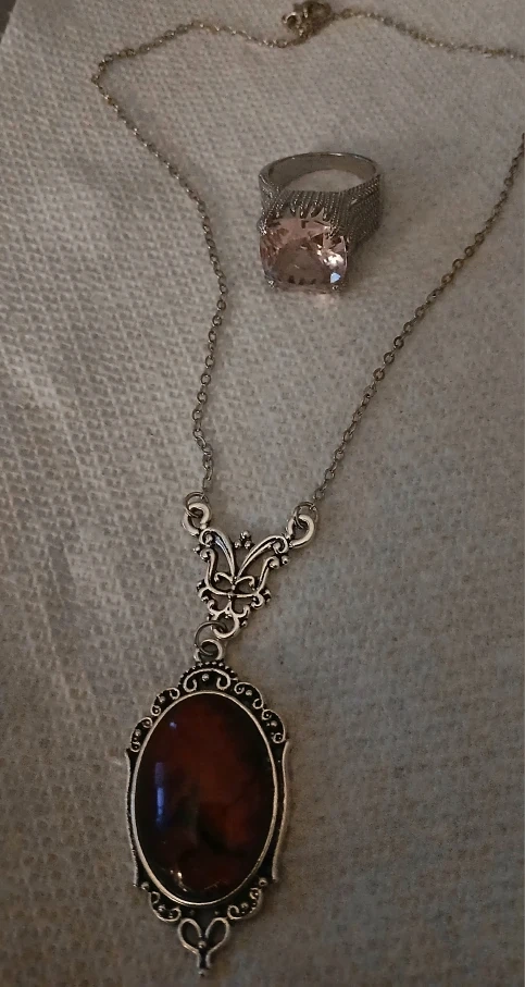 Selling a lovely vintage-style necklace with a red stone pendant and a ring features a large, square-cut stone. Both pieces are in great condition and would make a beautiful addition to any jewelry collection!