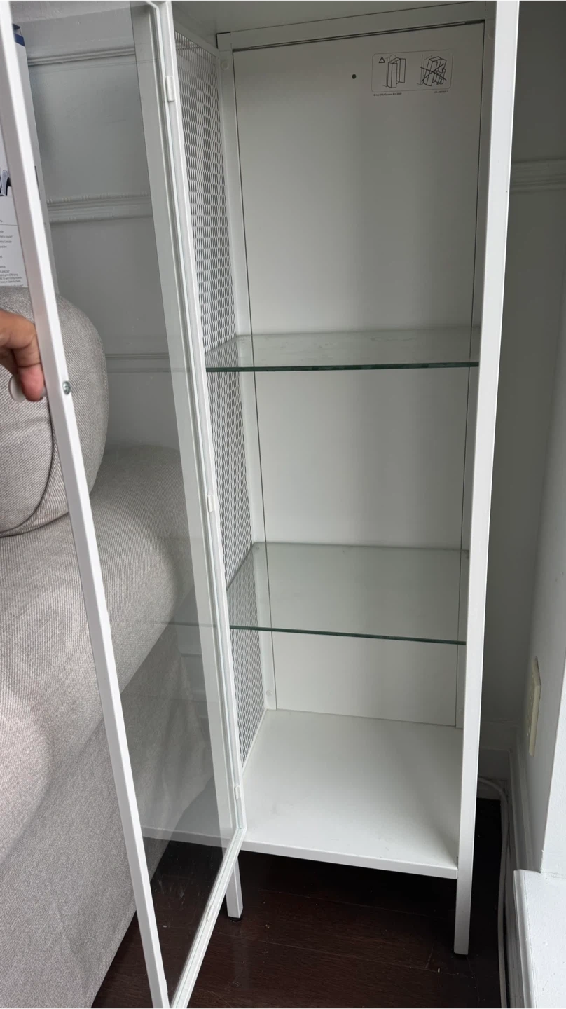 Selling an IKEA BAGGEBO cabinet in white. It's in great shape and perfect for displaying your favourite items. The glass doors keep everything dust-free, and the adjustable shelves make it easy to customize the space. This cabinet adds a touch of style to any room!