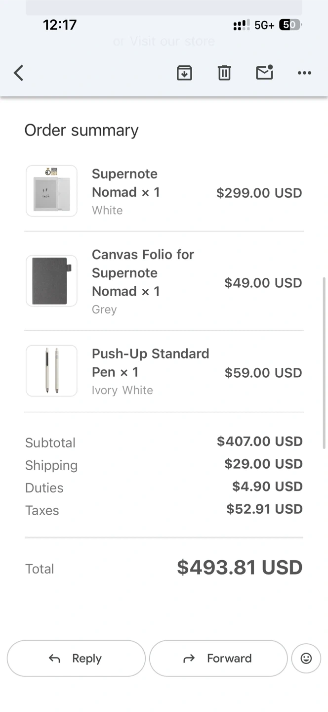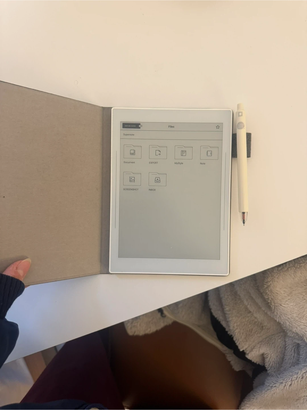 Selling a Supernote Nomad in white, complete with its Canvas Folio in grey and Push-Up Standard Pen in Ivory White.