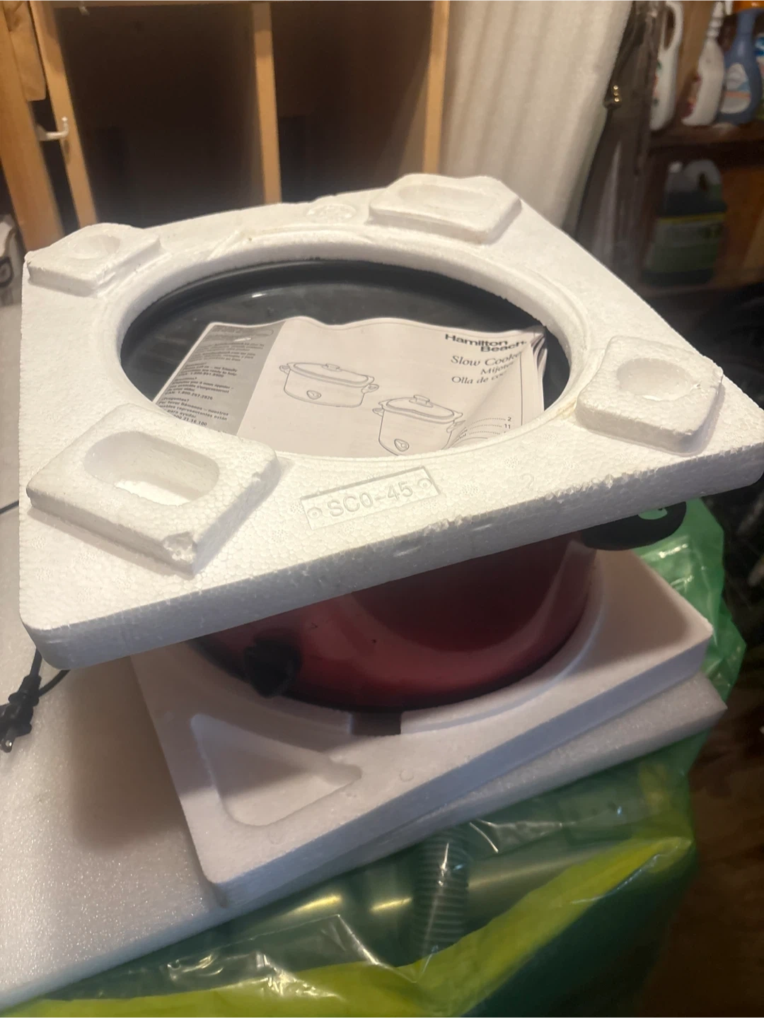 Selling a Hamilton Beach portable slow cooker! It's a 5-quart capacity, perfect for a 6 lb chicken or 5 lb roast. The design helps reduce messy spills with its strap and gasket lid. It also has a latch to centre the lid for secure, mess-free travel to parties and events. The box is included!