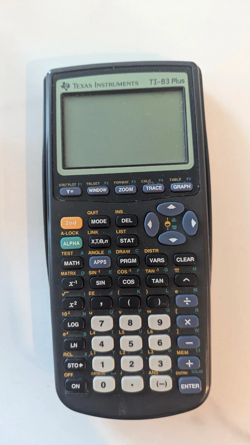 Selling a Texas Instruments TI-83 Plus calculator. Perfect for students or anyone needing a reliable graphing calculator. It's in good working condition and ready to use!