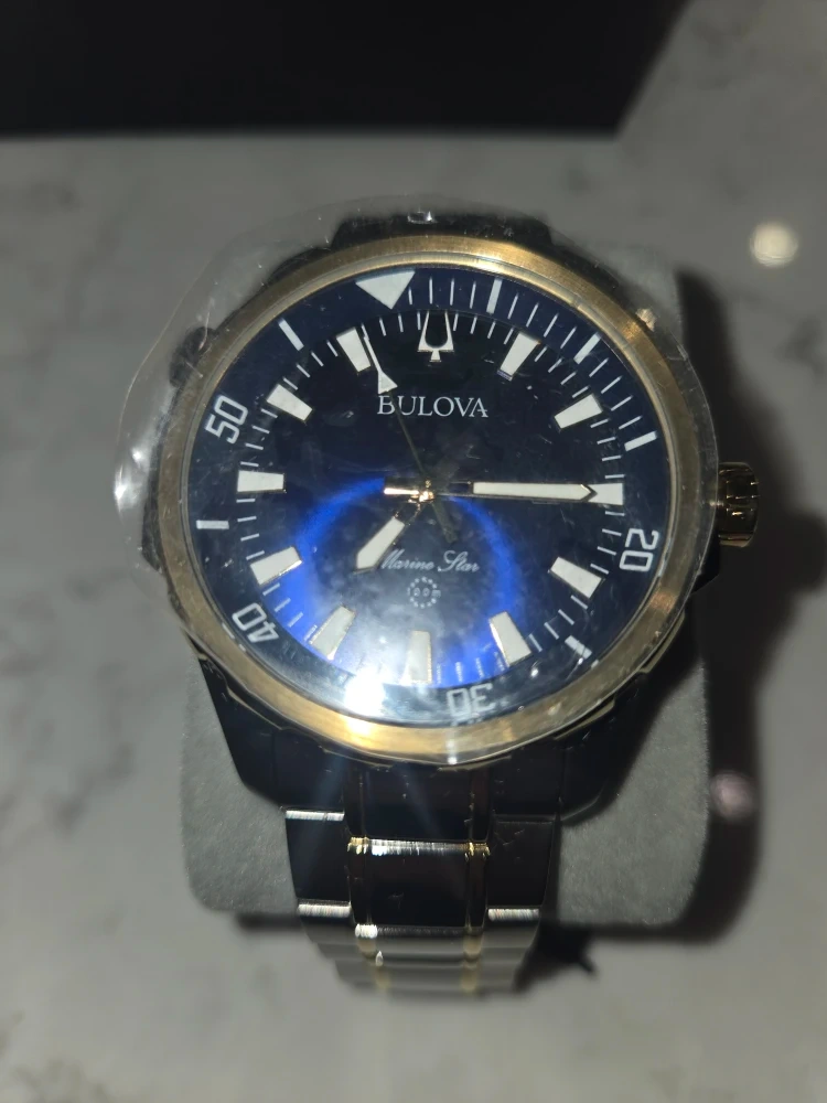 Buy & SellBulova Marine Star WatchBulova Marine Star Watch$350Selling a Bulova Marine Star watch. It has a silver and gold band, and a blue face. The watch is in great condition!ConditionNewBrandBulova0 chats·0 favorites·15 viewsSELLERverifiedlukaszHurontario600 reviewsWHERE TO MEETtim hortons