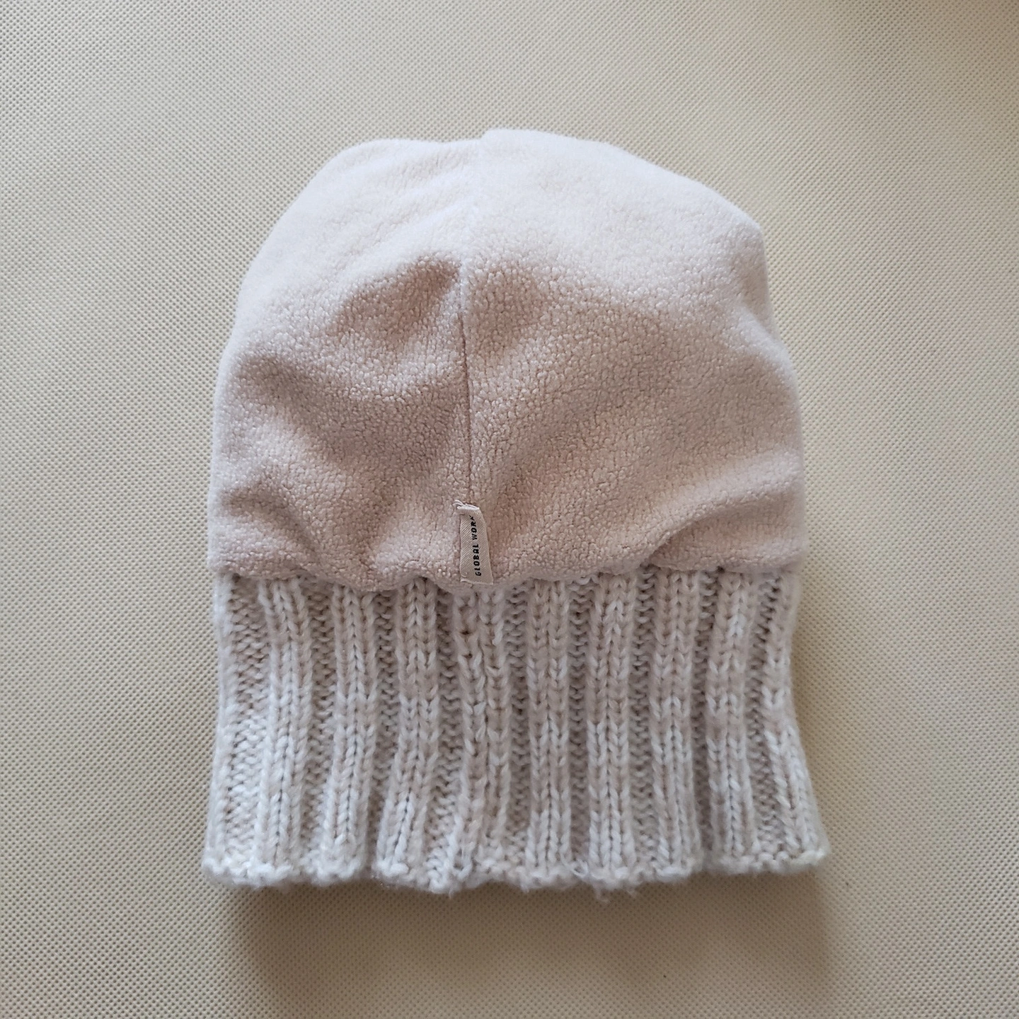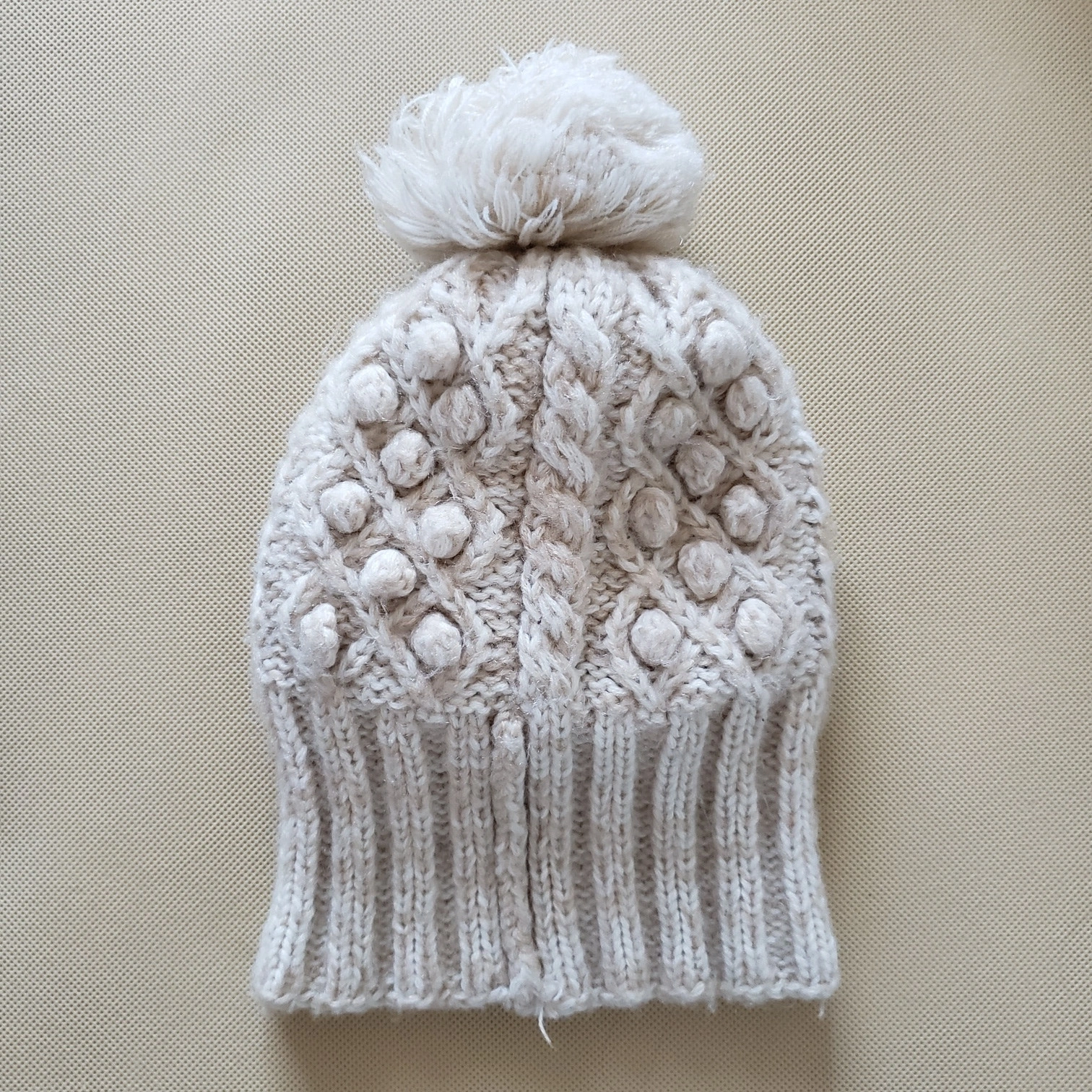 Adorable cream knit winter hat with pom-pom and a matching knit bow detail. Soft, warm, and perfect for cold weather.