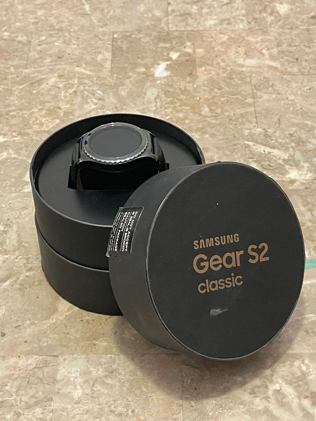 Selling a Samsung Gear S2 Classic smartwatch in black. It comes with its original box. It's in great condition!