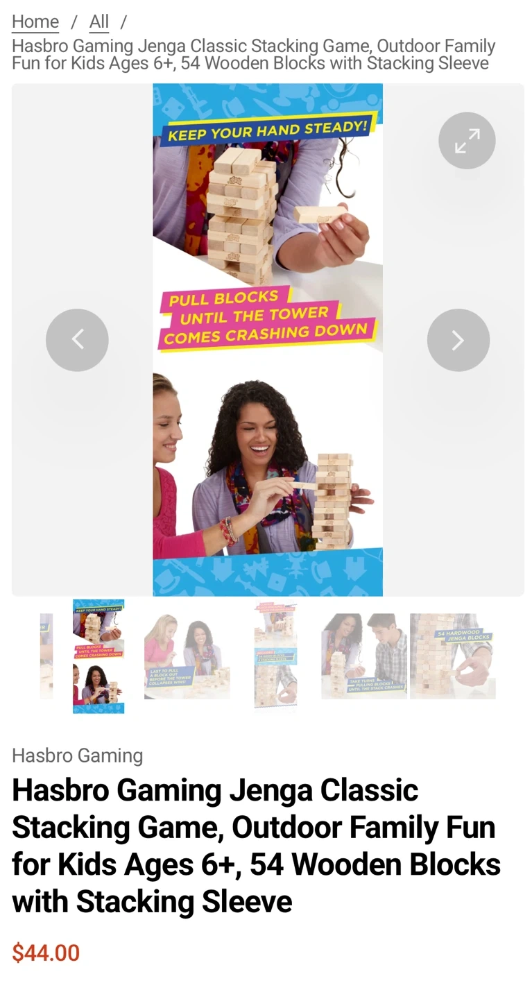 Selling a classic Jenga game by Hasbro Gaming! Perfect for family game nights, parties, or outdoor play, Jenga is easy to learn and fun for all ages 6 and up. The game encourages focus, hand-eye coordination, and friendly competition, whether playing solo or with friends .