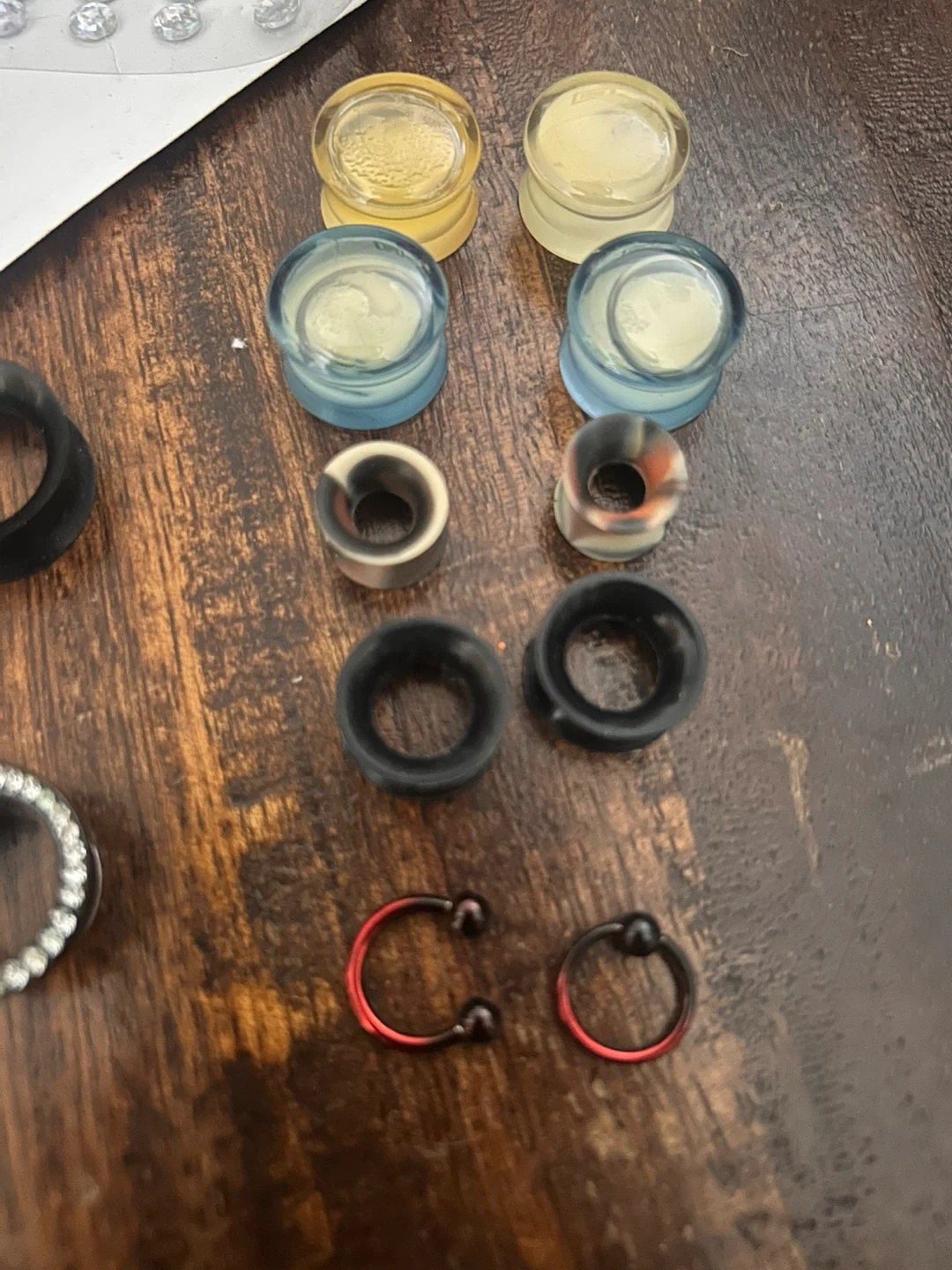 Selling a variety of body jewelry, including plugs, rings, and barbells. Perfect for adding to your collection & a hand sanitizer holder from bath and body