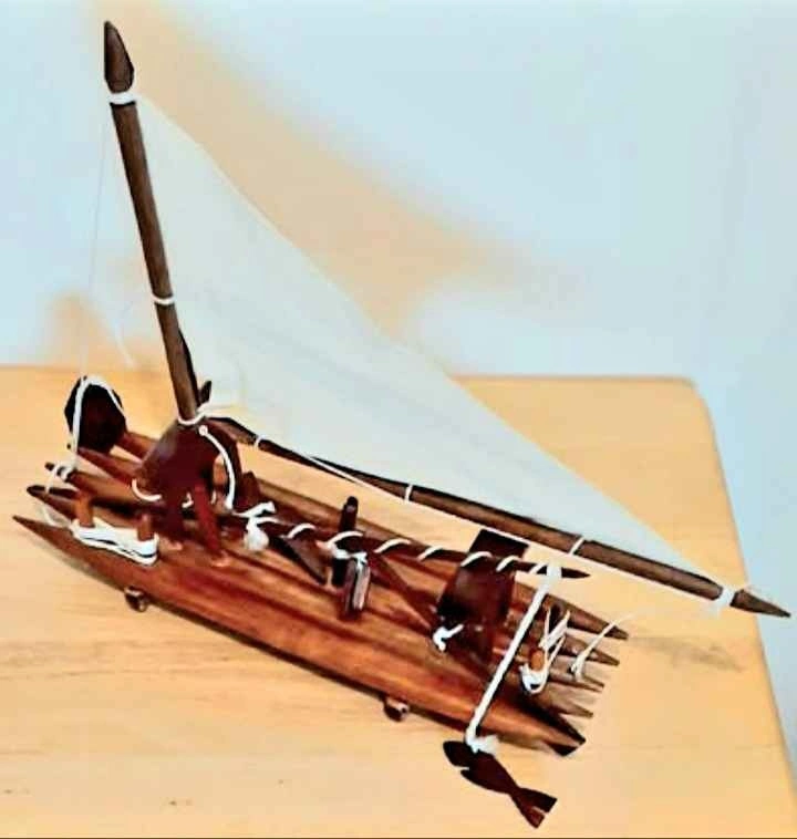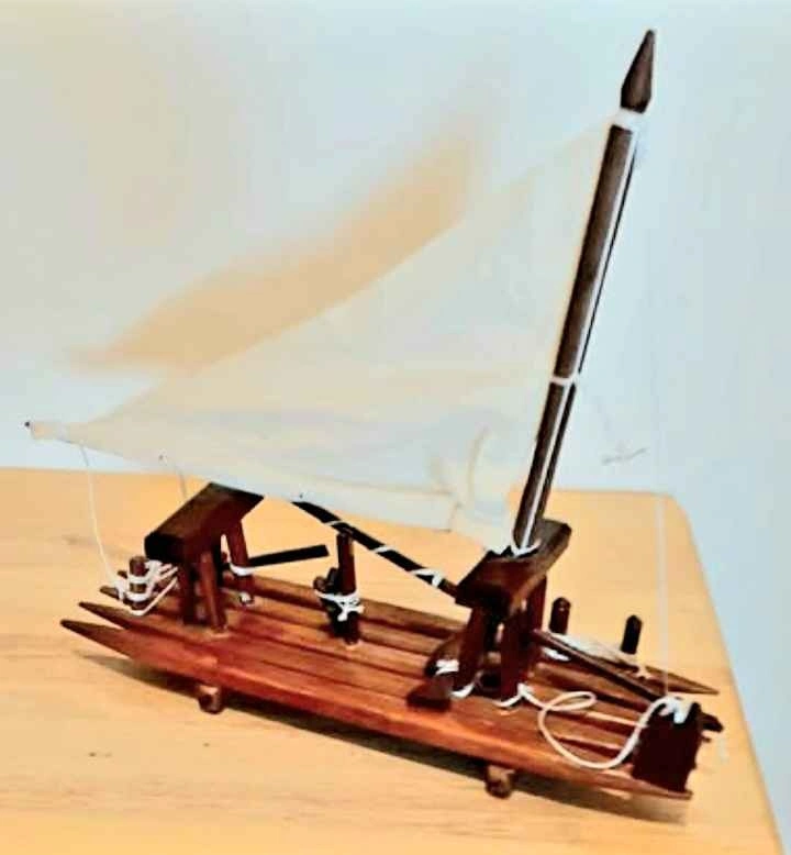 Unique1/18 Handmade, Wooden Art. Very Rare, Jangada Craft Replica. Collectible Wooden Water Craft. Height : 10.50 inches. Length : 14 inches. Width : 4 inches.