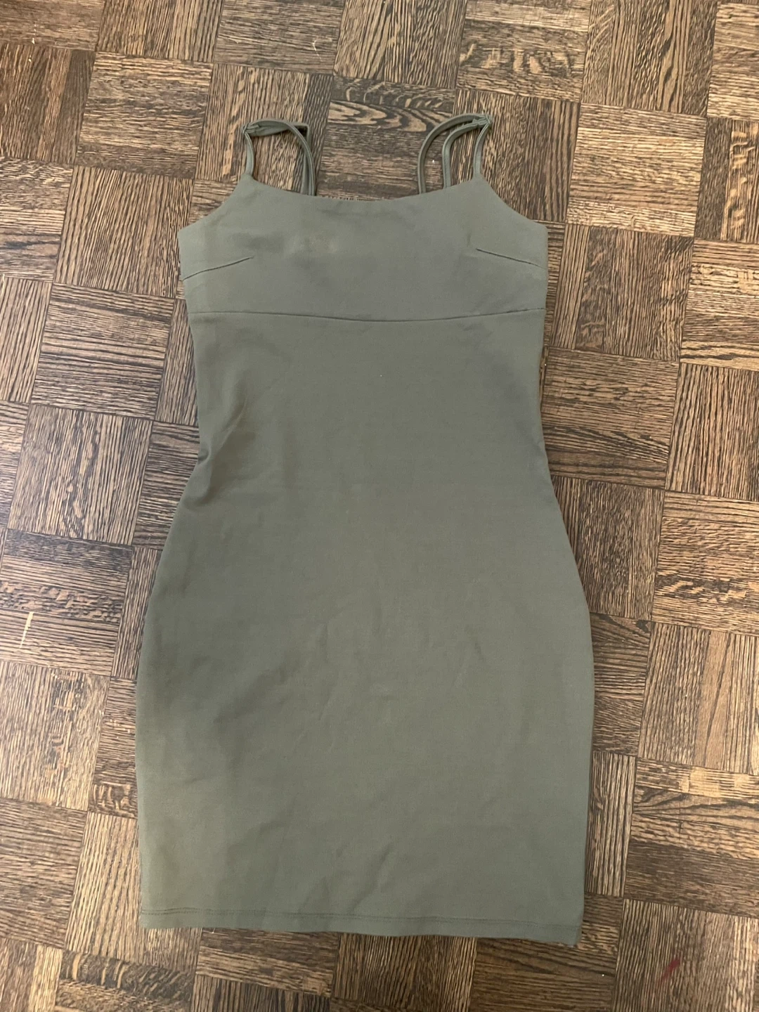 Selling a cute olive green mini dress from Dynamite! It's a size XS and in great condition. Perfect for a night out or a casual day.