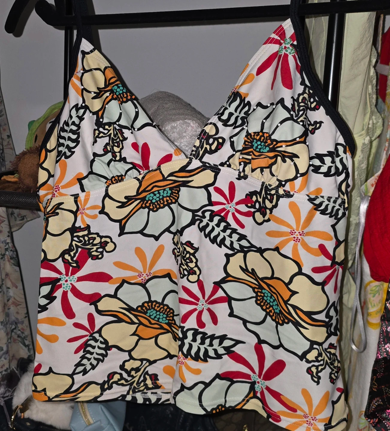 Beaded Floral Tankini Top