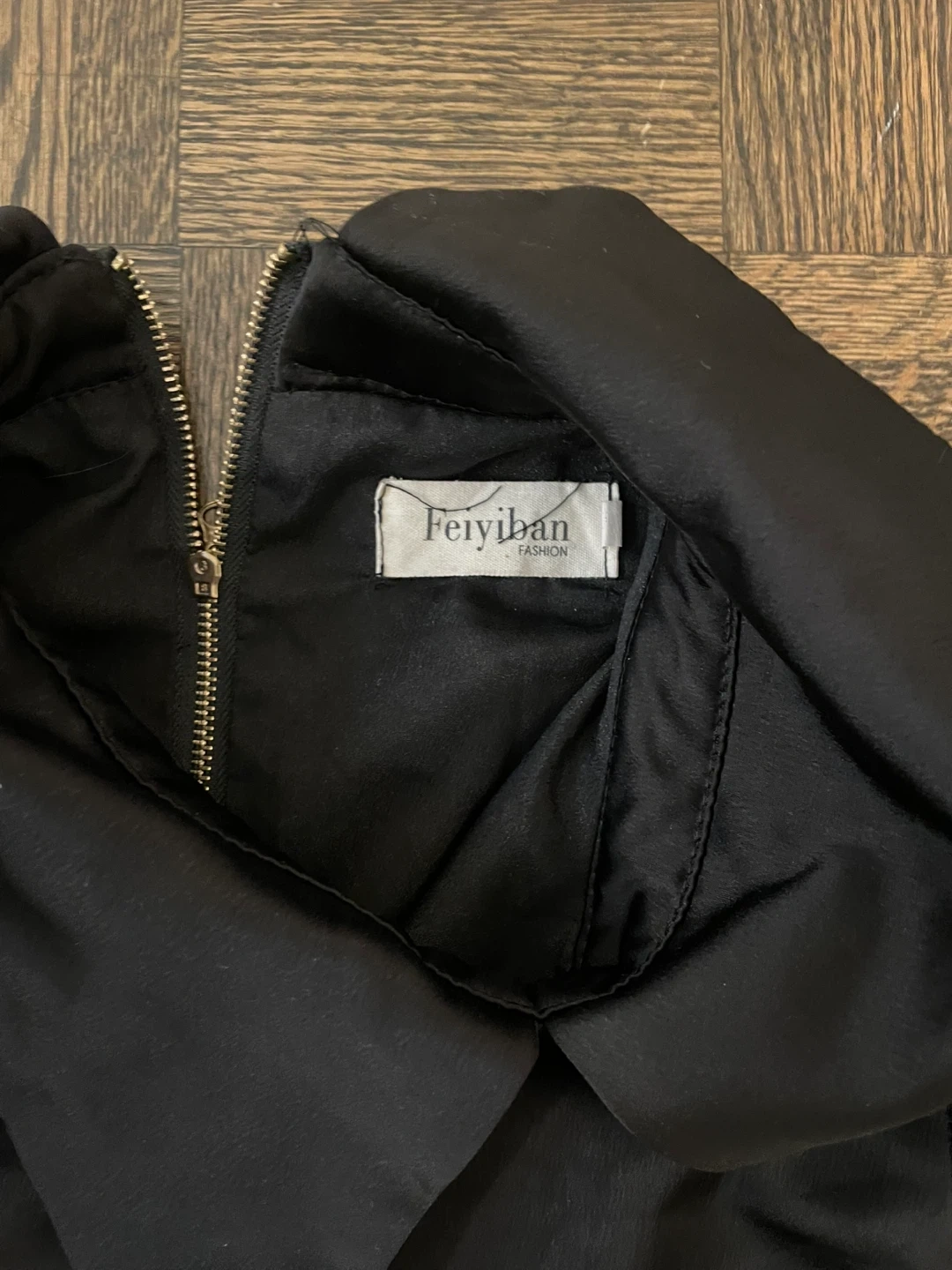 Selling a stylish Feiyiban mini dress in black! It's a unique piece with a mix of textures and a flattering silhouette. Perfect for a night out or a special occasion