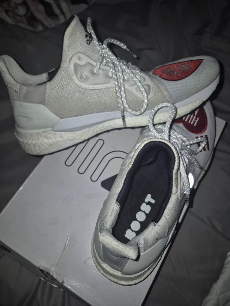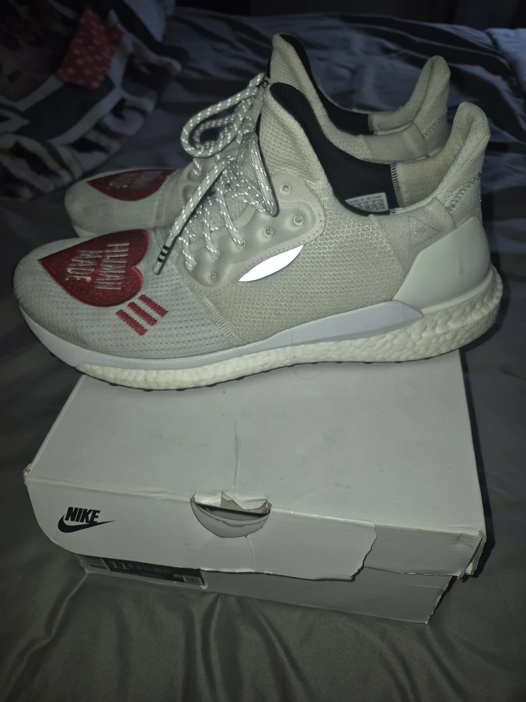 Selling a pair of Adidas x Human Made Solar Boost sneakers in US size 11. They show some signs of wear, as you can see in the pictures, but they still have a lot of life left! The box is included.