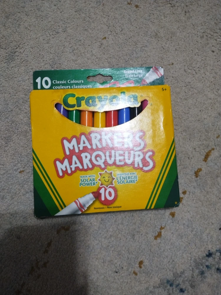 Selling a pack of Crayola 10 Classic Colour Markers! These markers are non-toxic and made with solar power. Great for kids aged 5 and up. Perfect for all sorts of arts and crafts.