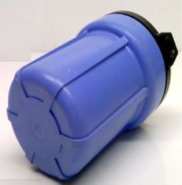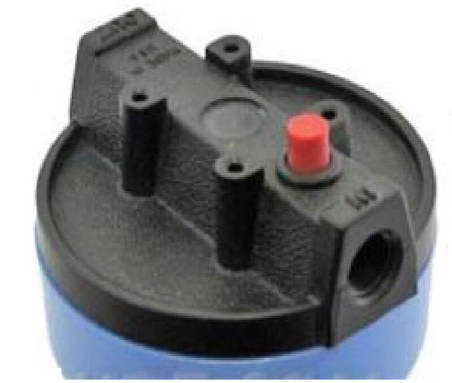 NEW 3/8-Inch 5-Inch Slim Line Blue Filter Housing with Pressure Relief. Included One Spun Polypropylene Filter Cartridge. This Pentek 158002 3/8" #5 Slim Line blue filter housing with pressure relief is suitable for low flow rate applications that have space restrictions. The sump and cap are made of reinforced polypropylene for strength and resistance to chemicals. The cap has 1/4" female National Pipe Thread Taper (NPT) threaded input and output connections and a nitrile butadiene rubber (Buna-N) O-ring to ensure a watertight seal. A pressure relief button on the inlet side of the cap releases pressure in the housing for changing filter cartridges. The housing can be used with a 5" x 2-1/2" sediment or carbon filter cartridge. It has an initial pressure drop of 2 pounds per square inch (psi) at a flow rate of 3 gallons per minute (gpm), a maximum operating pressure of 125 psi, and a maximum operating temperature of 125 degrees F (51.7 degrees C). This filter housing meets Food and Drug Administration (FDA) standards, and is for use in various applications, including residential drinking water filtration, food service, and humidifying systems, among others.