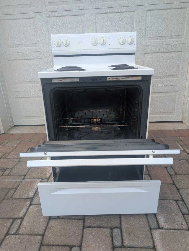 Stove with coil top and bake and broil settings! In good working condition and is perfect for anyone looking for a reliable and simple cooking solution. Call or text me at 705-440-9159