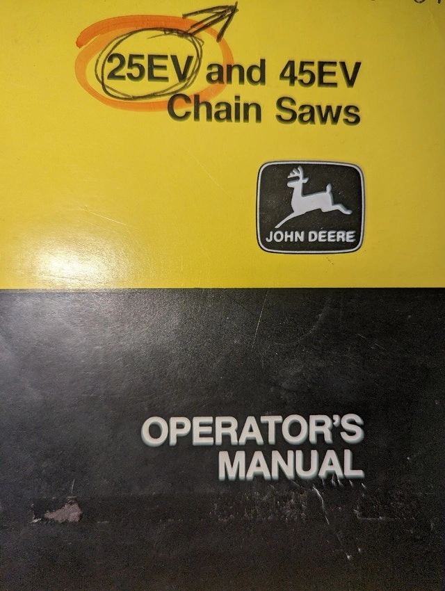 John Deere 25EV and 45V Chainsaw Operators Manual OM-TY20594. Any questions please Call or Text 705-440-9159. Let me know if you're interested!