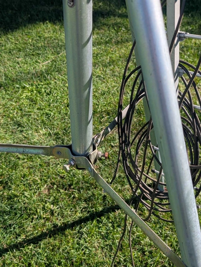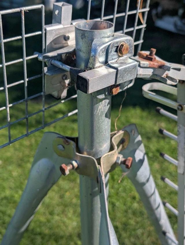 This antenna holder tripod is perfect for setting up your antenna! It's in fair condition, showing some signs of weathering. Perfect for anyone looking to set up an antenna on a budget. Call or text 705-440-9159
