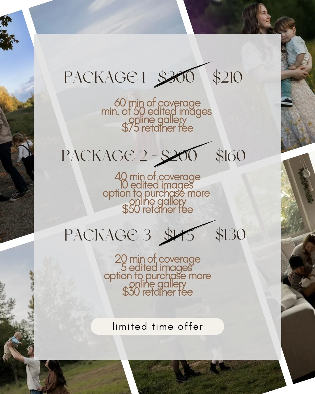 I'm hosting a Black Friday Deal for photoshoots. I would love to get new faces in front of my camera! The cover image is what my prices are with up to 30% off.