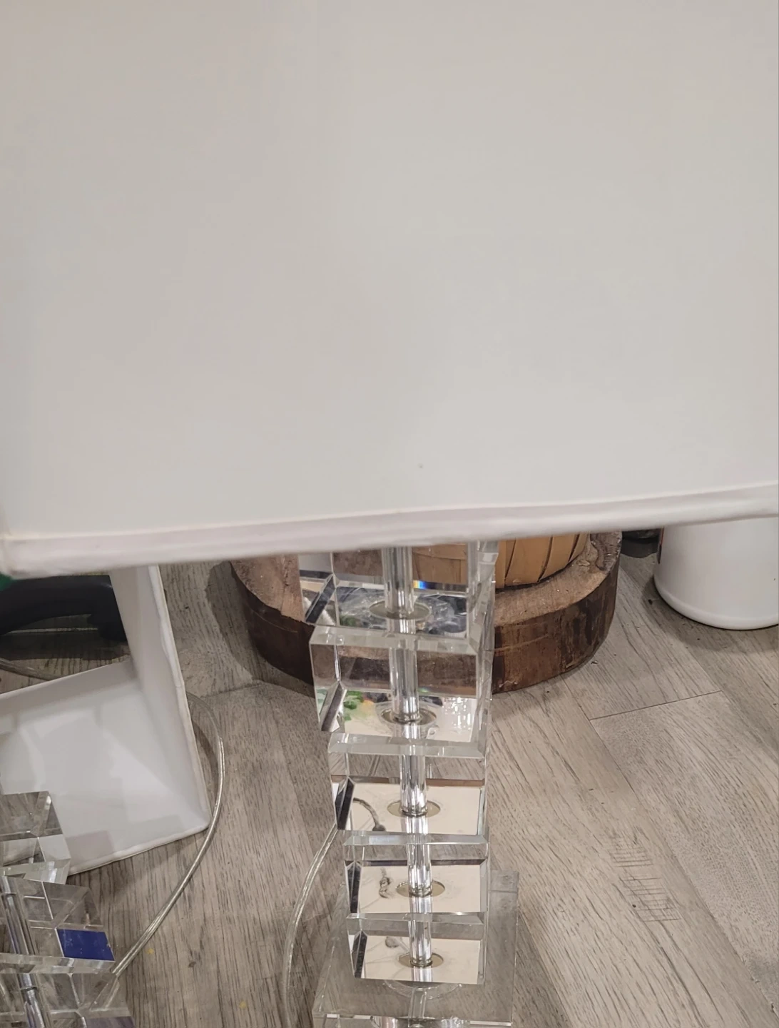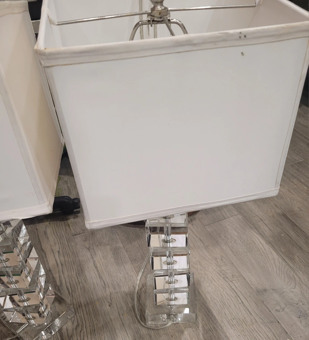 Selling 2 crystal table lamp with a white shade! It's in great condition and would look lovely in any room. The crystal base is very eye-catching