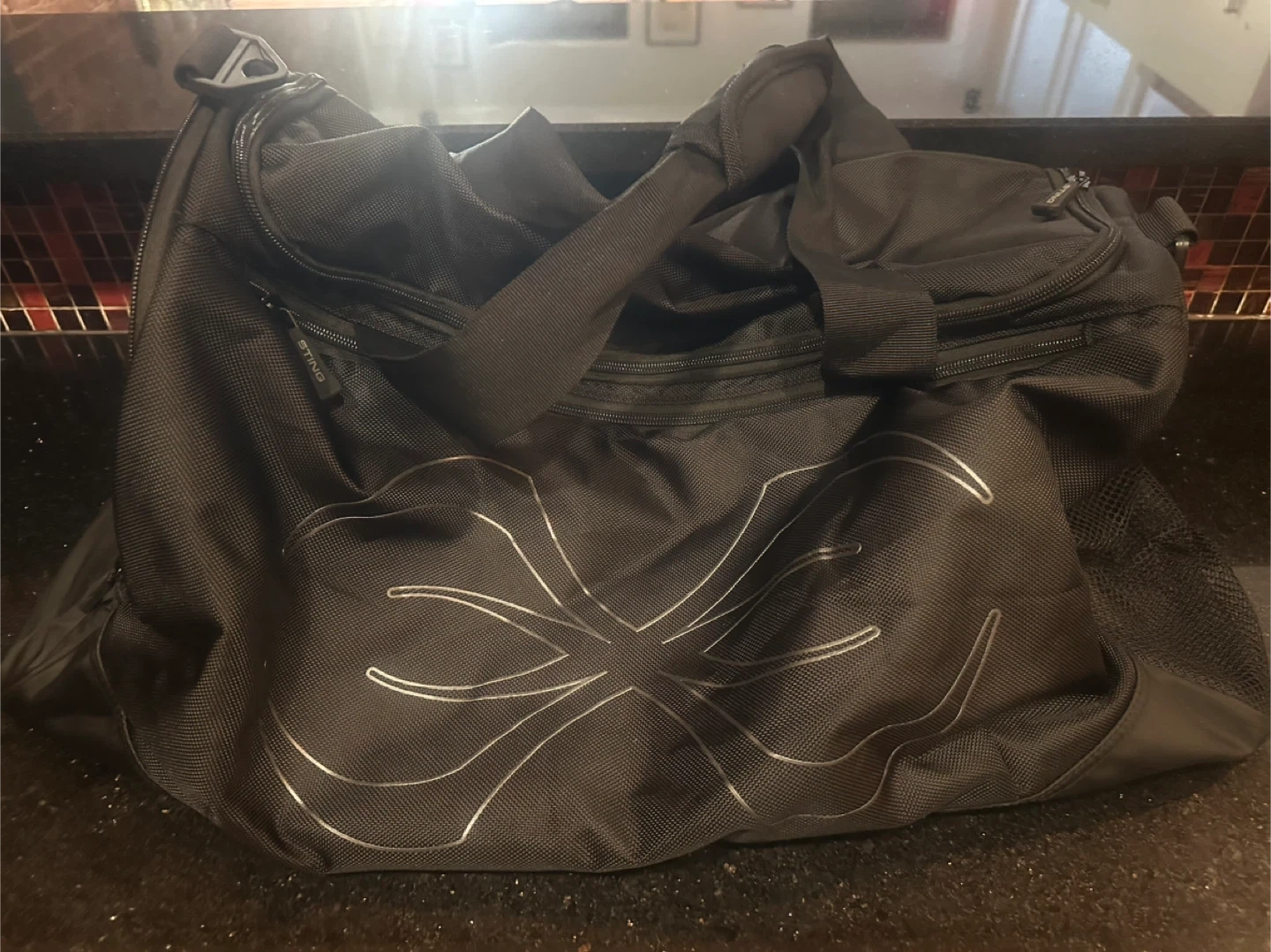 Selling a black STING duffle bag. It's in great condition and ready for your gym sessions or weekend getaways! The bag features a stylish design and is made of durable material. Retail $60