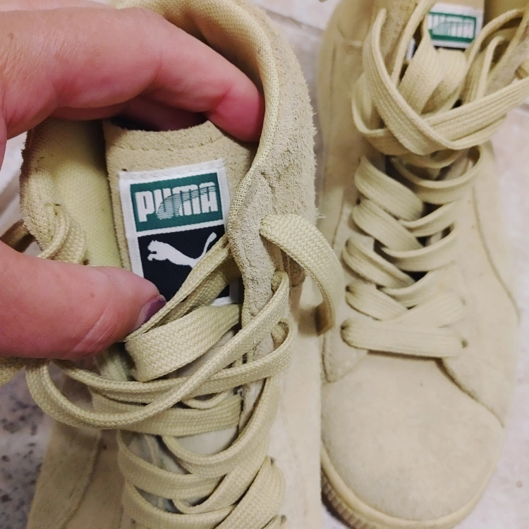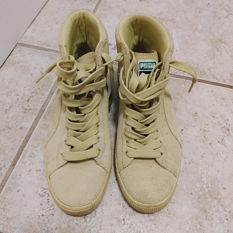 Selling a pair of Puma suede high-top sneakers. They're in good condition and ready for a new owner! They have a classic look and are super comfy for everyday wear