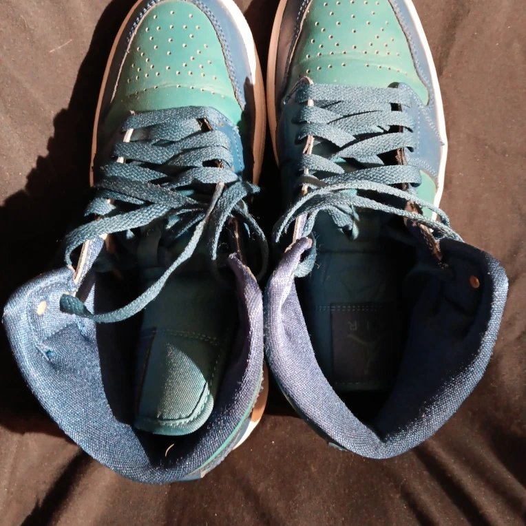 Selling a pair of Nike Air Jordan 1 Mid sneakers in teal and blue! They're in great shape and ready for a new owner. The size is a US 7.5